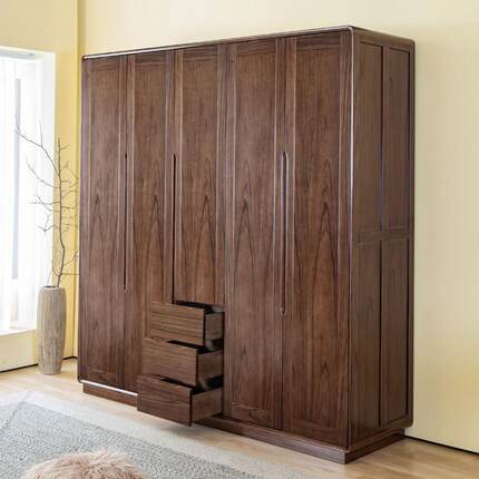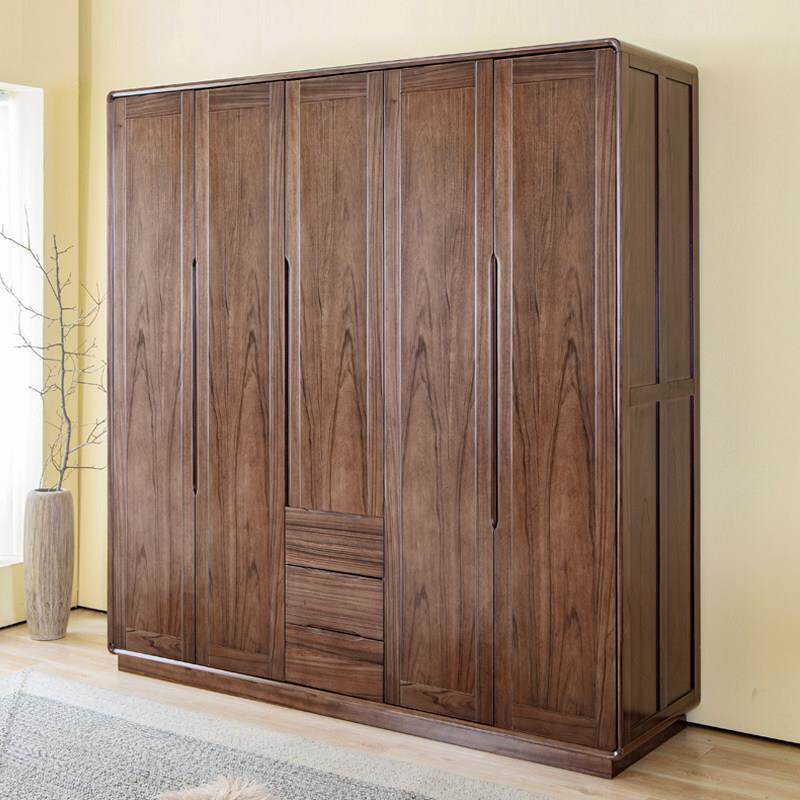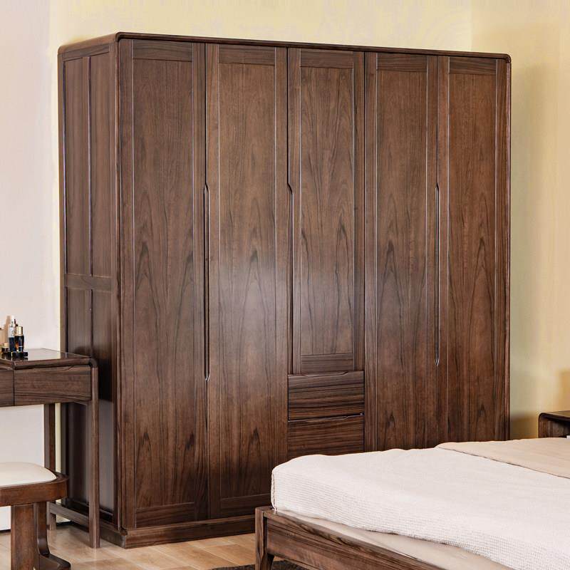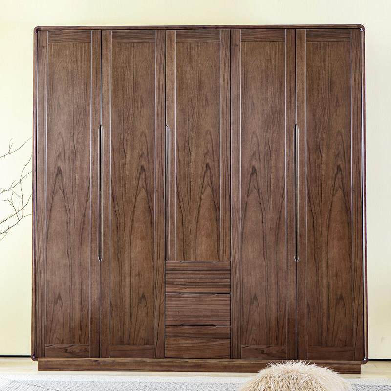 全实木大衣柜纯黑胡桃木衣整体橱柜北欧简约现代主卧室家俱原木挂