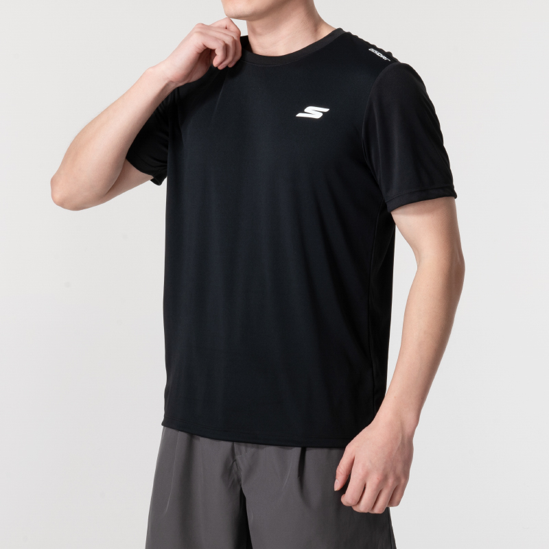 斯凯奇T恤男夏季新款黑色薄款官方训练服健身针织运动半袖短袖男