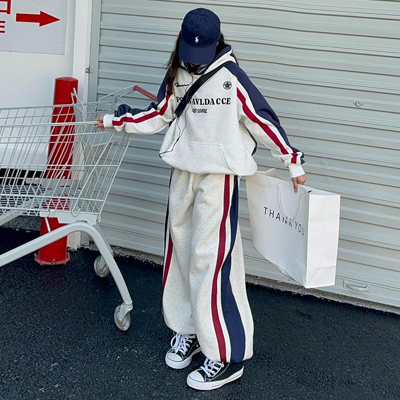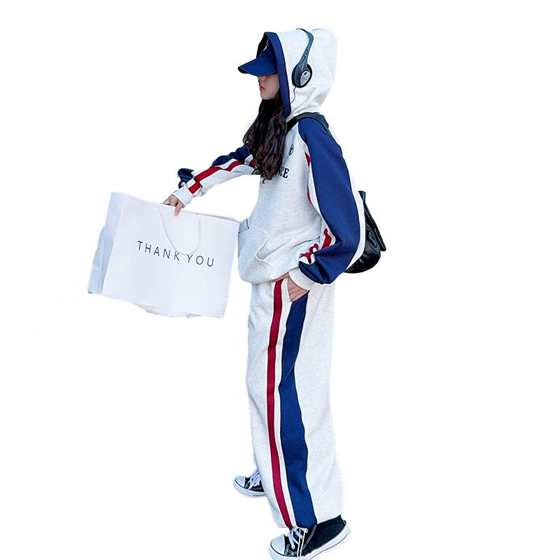 女童秋冬装套装2024休闲百搭新款网红洋气运动中大童加绒两件套潮