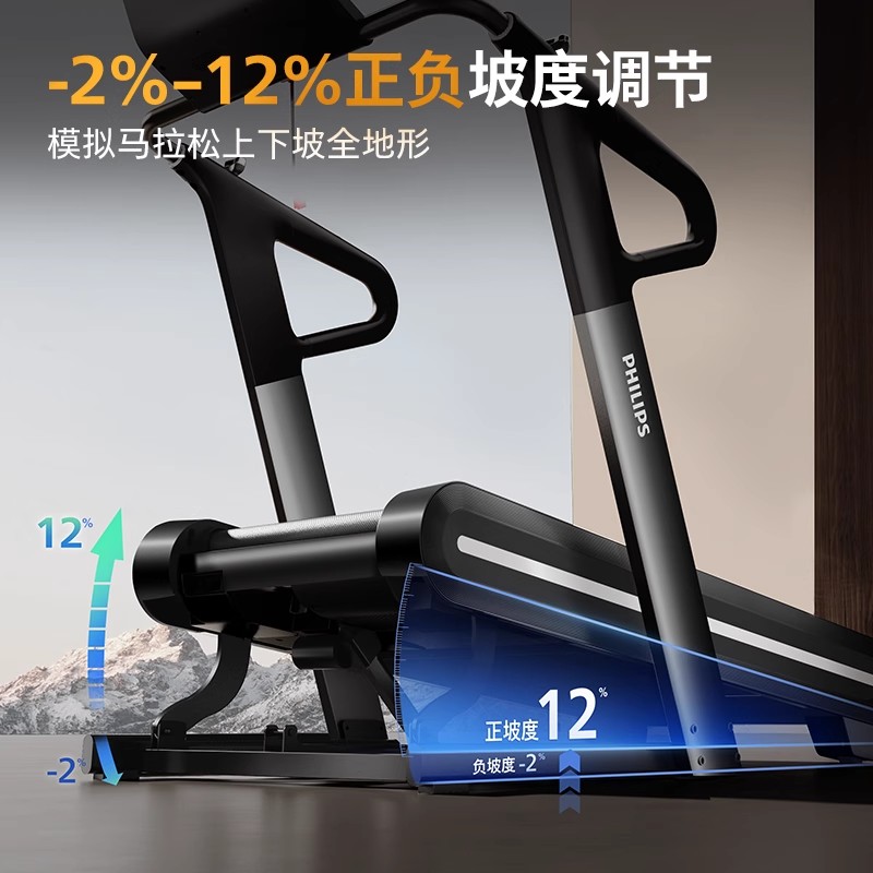 飞利浦跑步机家用款健身房专用超静音小型2024新款爬坡跑步机