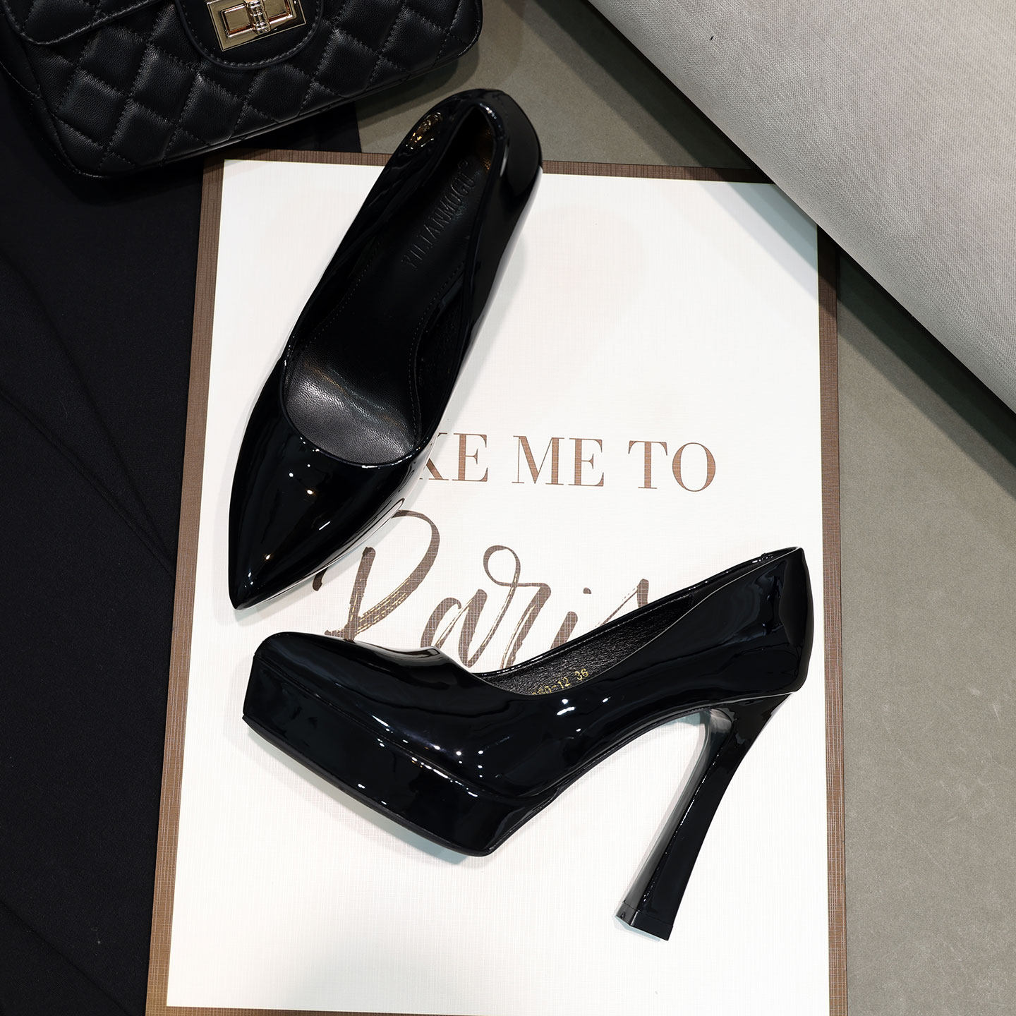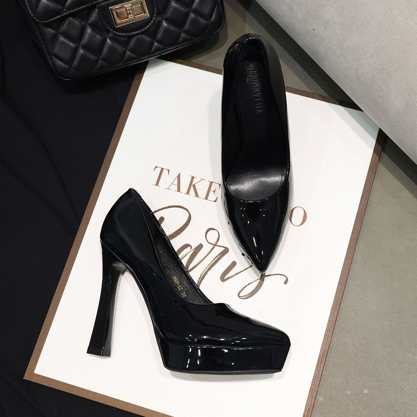 新款欧美性感黑色夜店防水台12CM女鞋单鞋粗跟女尖头超高跟鞋女鞋