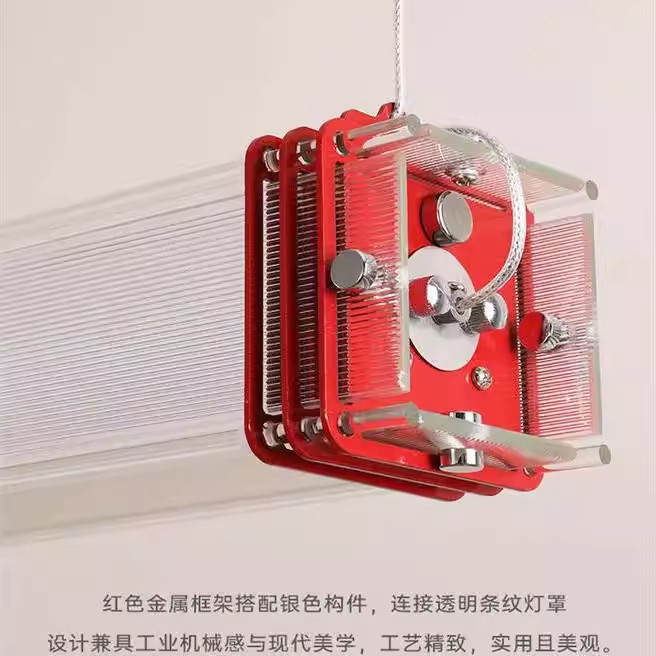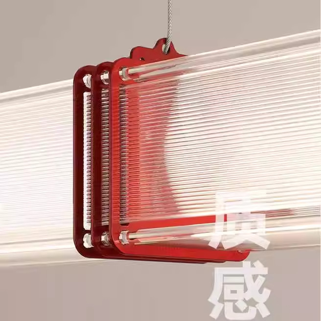 包豪斯一字长条餐厅吊灯艺术红色工业风不锈钢灯前台灯咖啡厅灯具