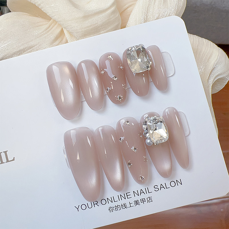 【Lilynail奶茶猫眼点点】手工穿戴甲定制2026新款中长款美甲贴片