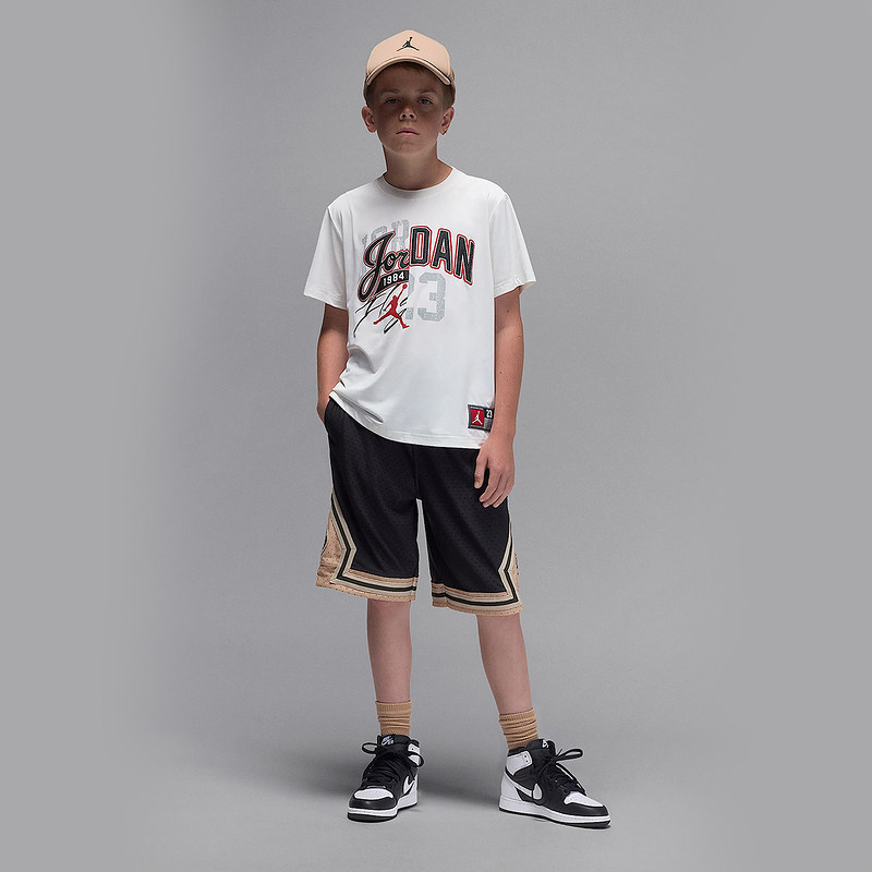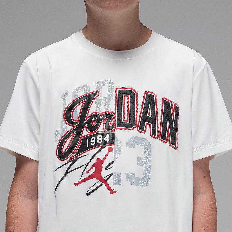 JORDAN耐克大童校园风印花T恤夏季新款男童短袖针织衫IO2296-133