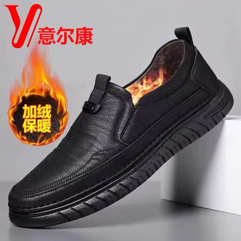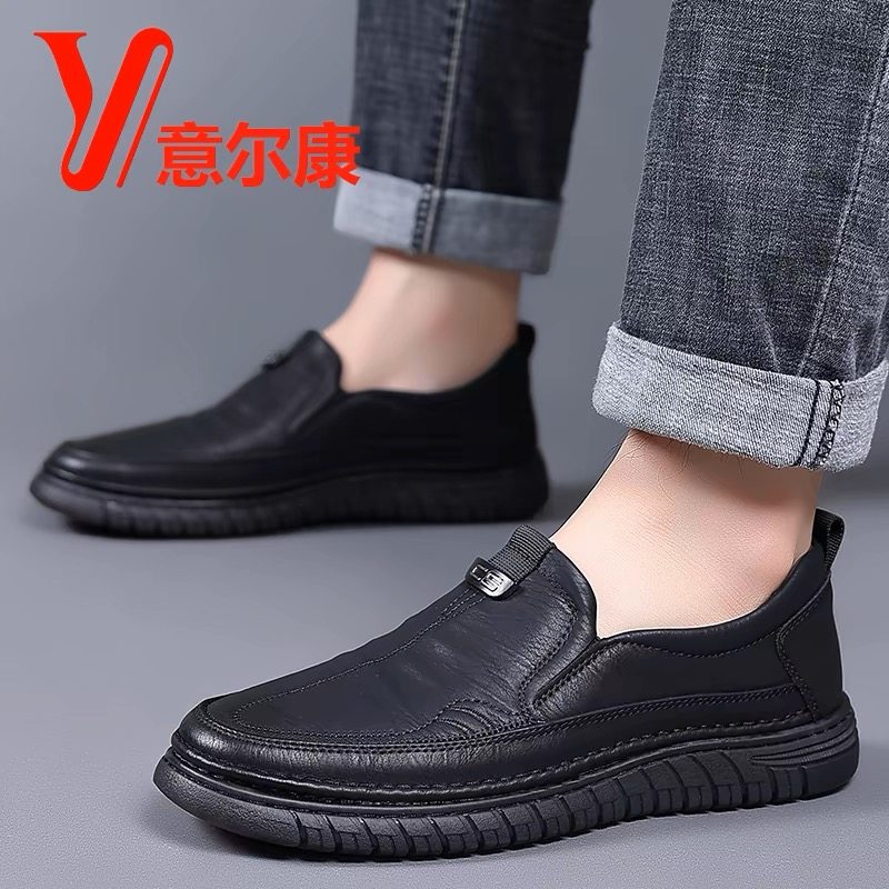 意尔康男鞋夏款一脚蹬男士真皮休闲牛筋底防滑耐磨透气中年皮鞋男