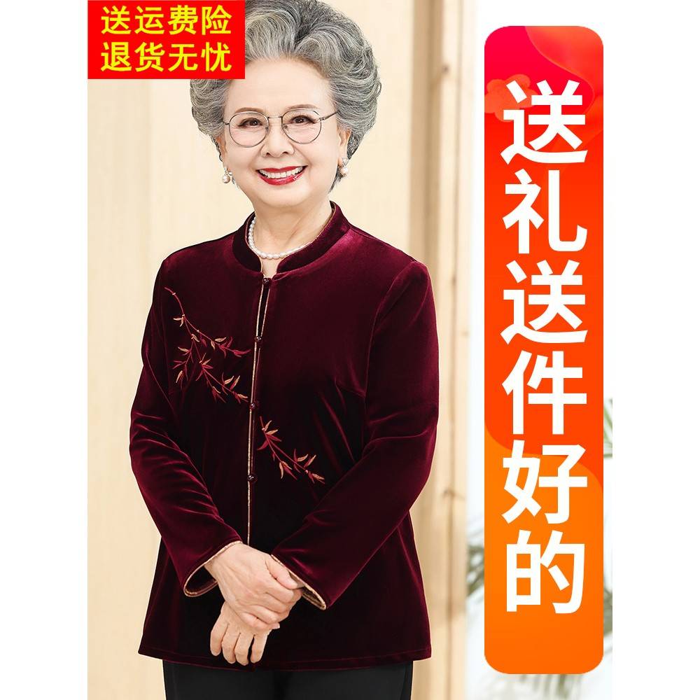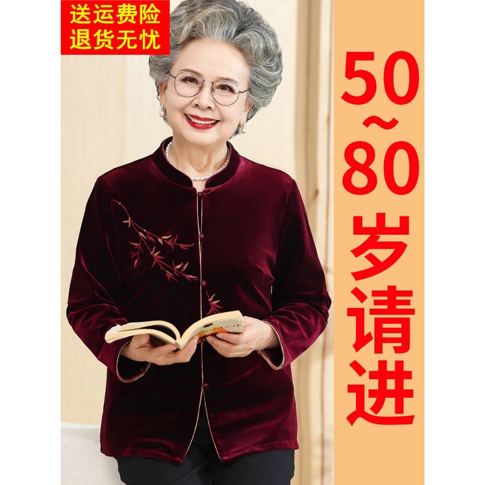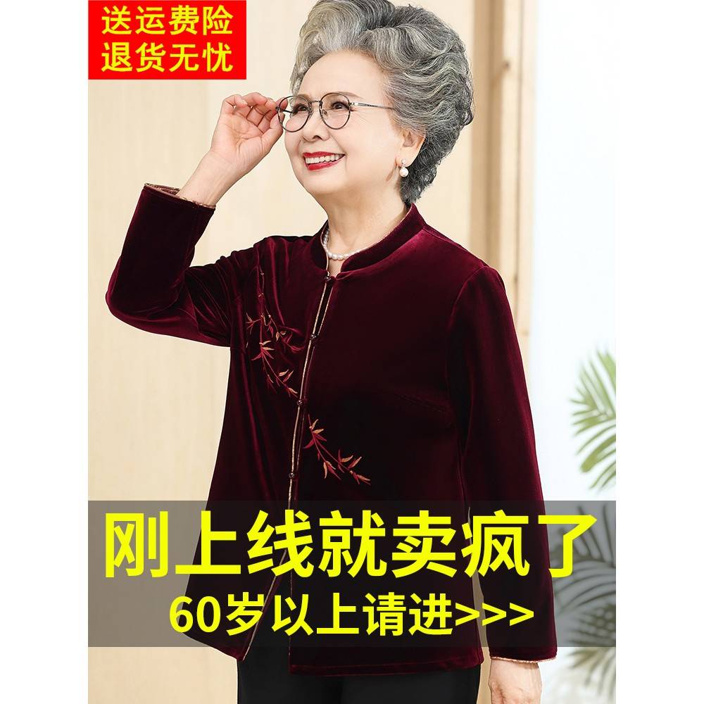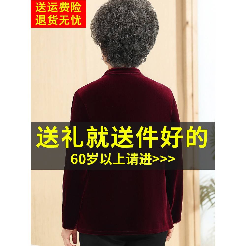 中老年人秋装女妈妈装长袖金丝绒衬衫奶奶老人太太春秋季薄款外套