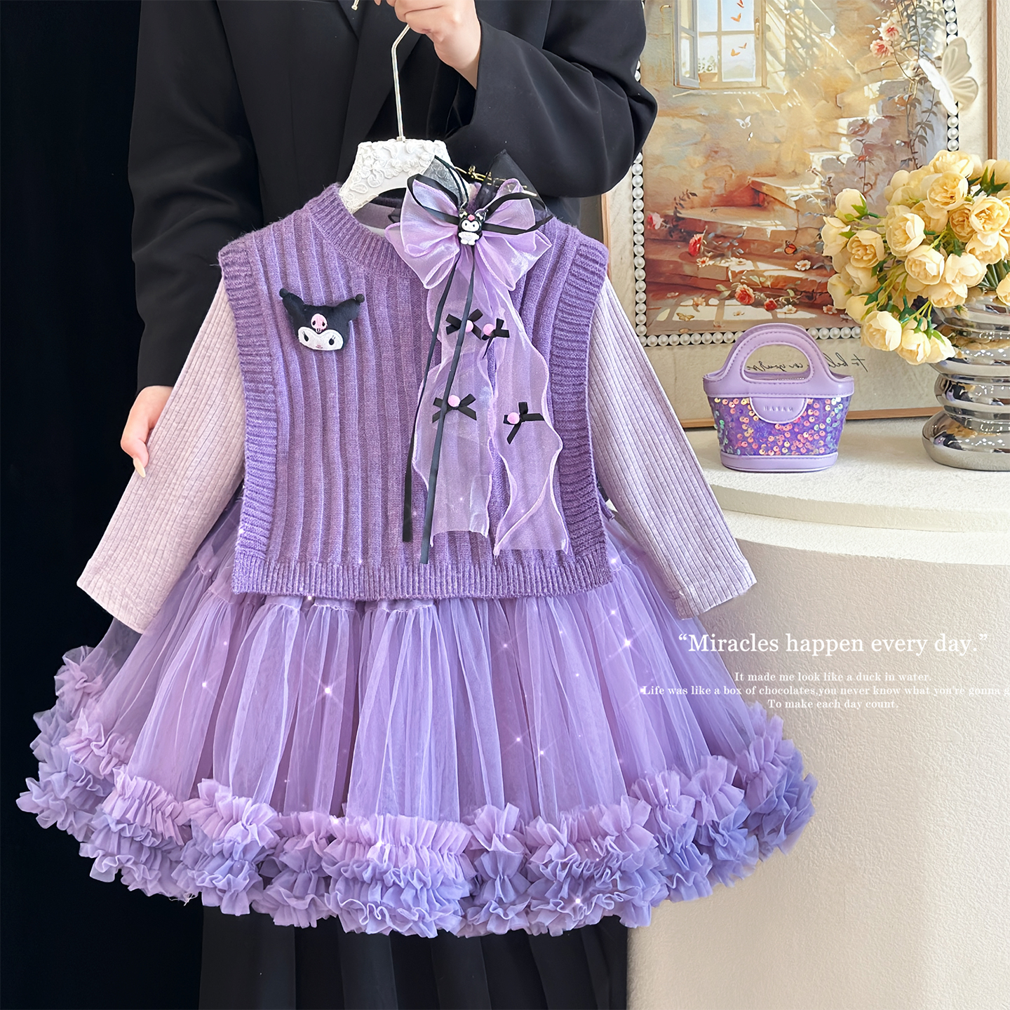 女童库洛米连衣裙秋装2025新款儿童裙子洋气小女孩针织马甲套装裙