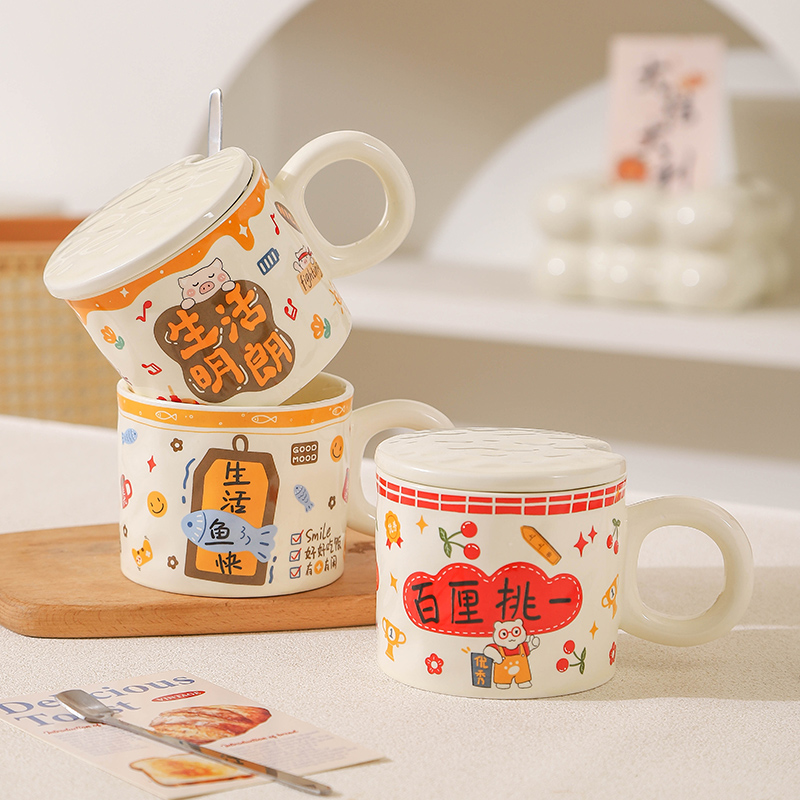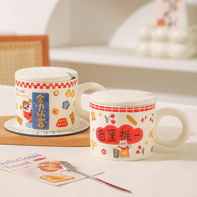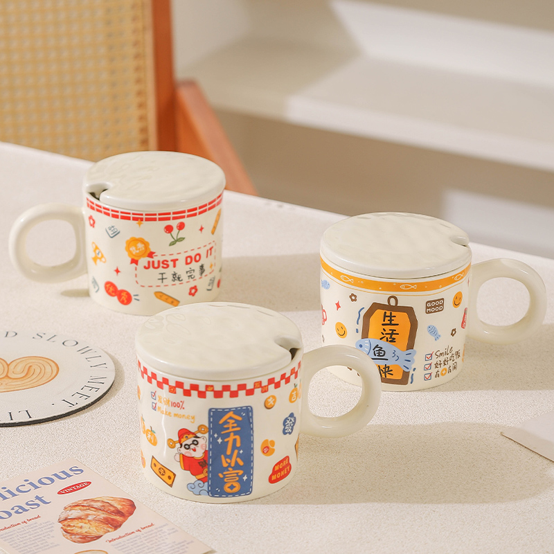 带盖马克杯小众设计感杯子礼盒礼物情侣杯大容量陶瓷杯办公室水杯