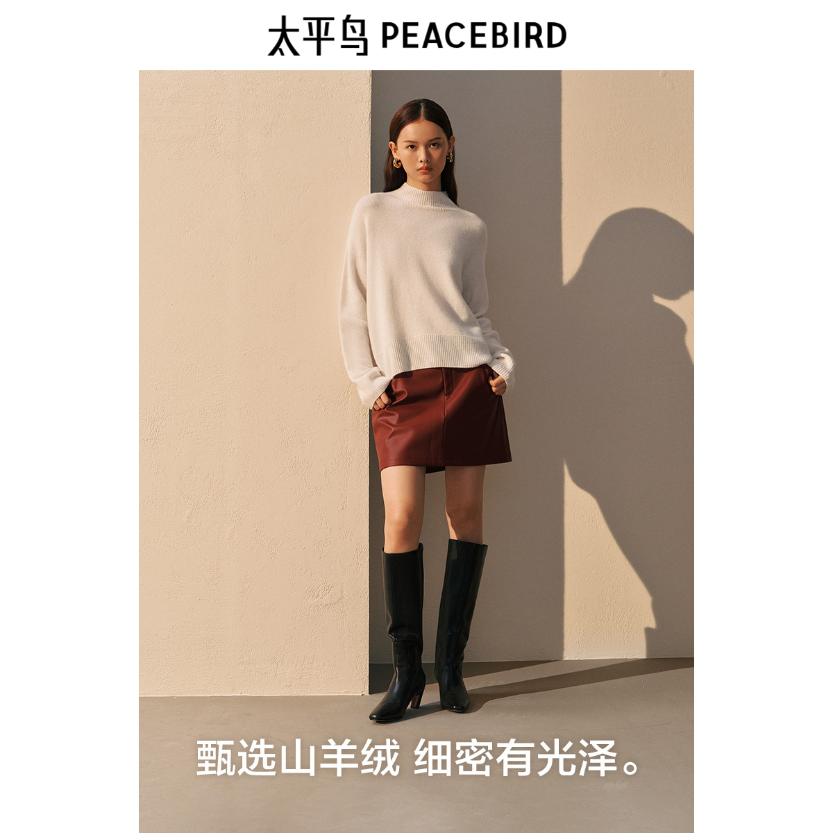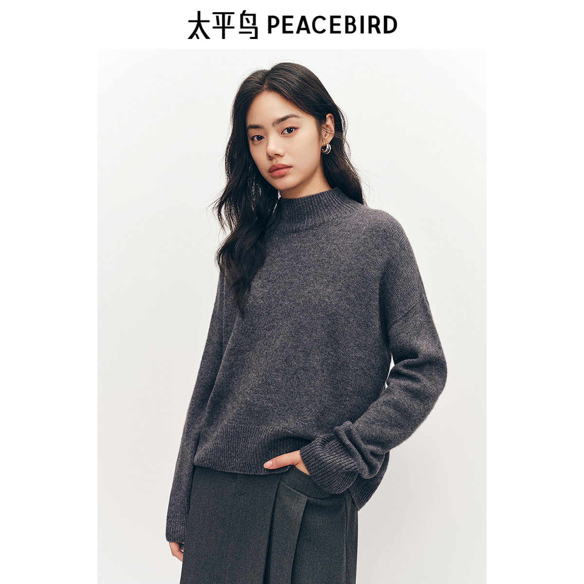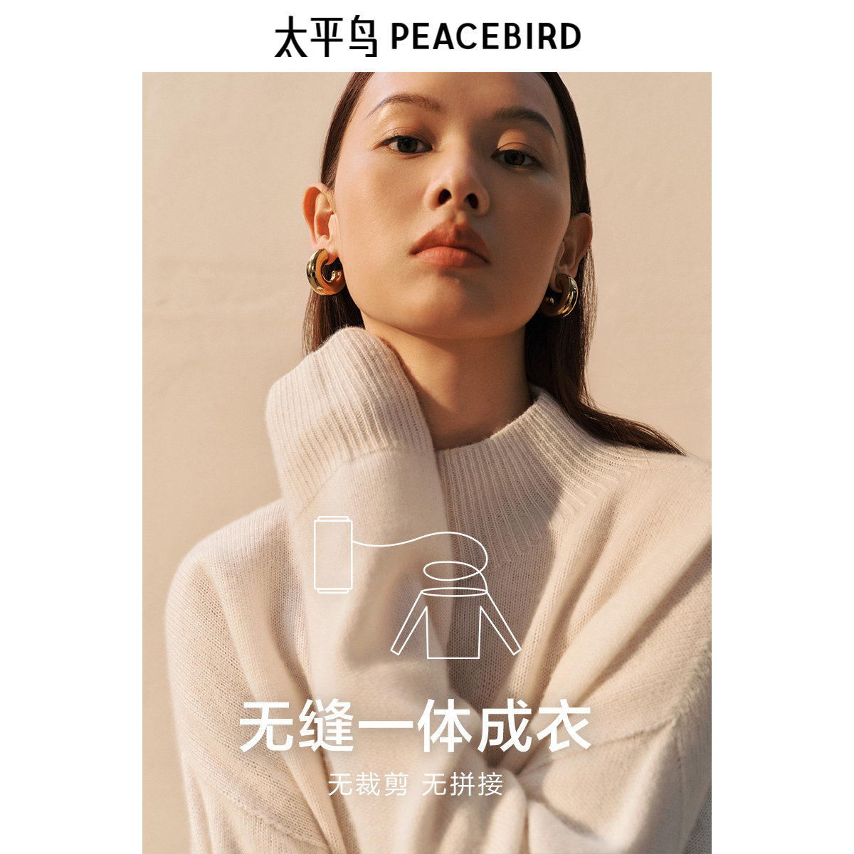 *太平鸟无缝系列轻奢羊绒针织毛衫24冬装新款一线成衣半高领毛衣