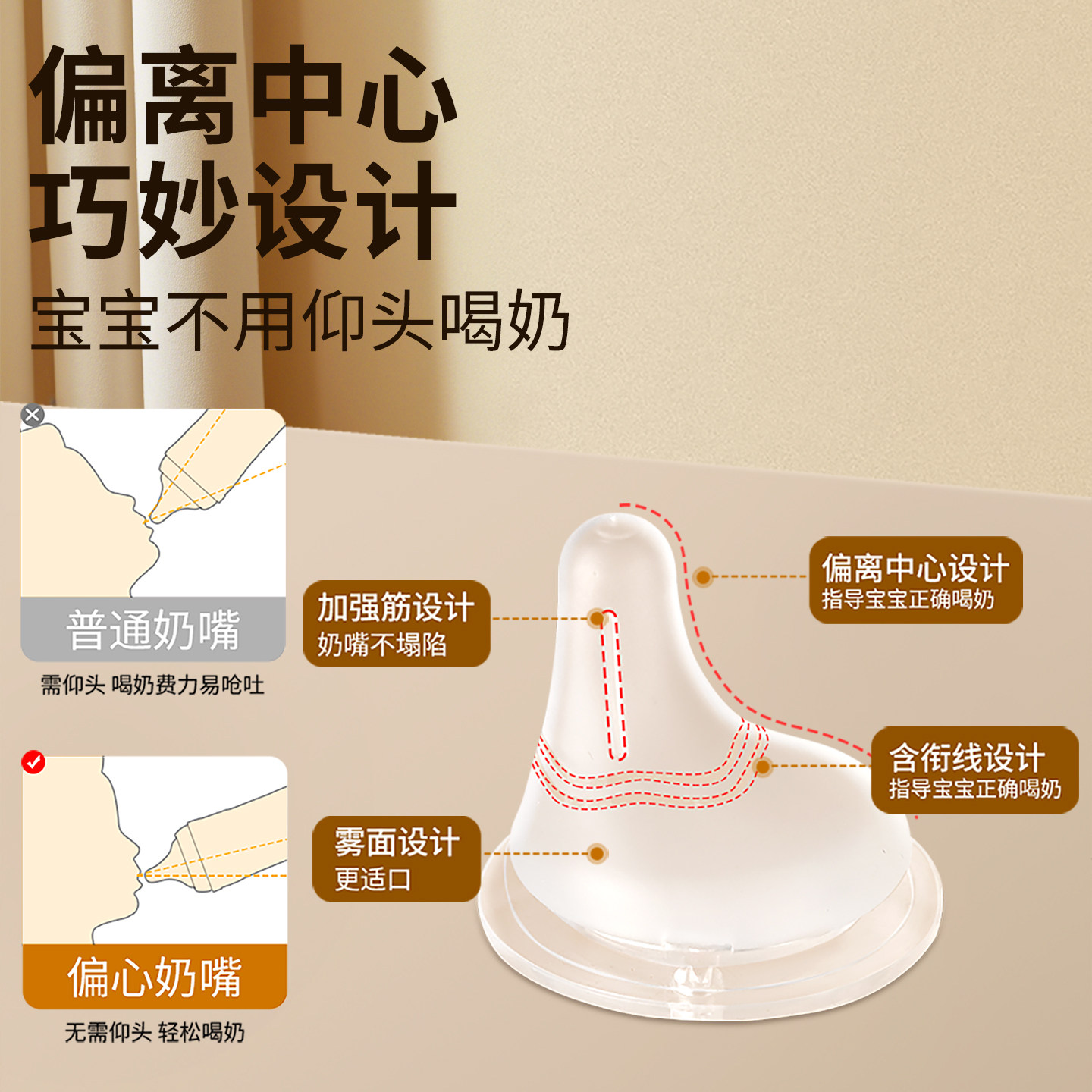 适配贝亲含衔线偏心奶嘴