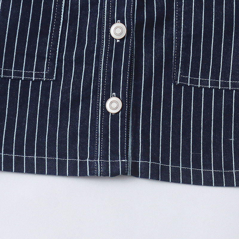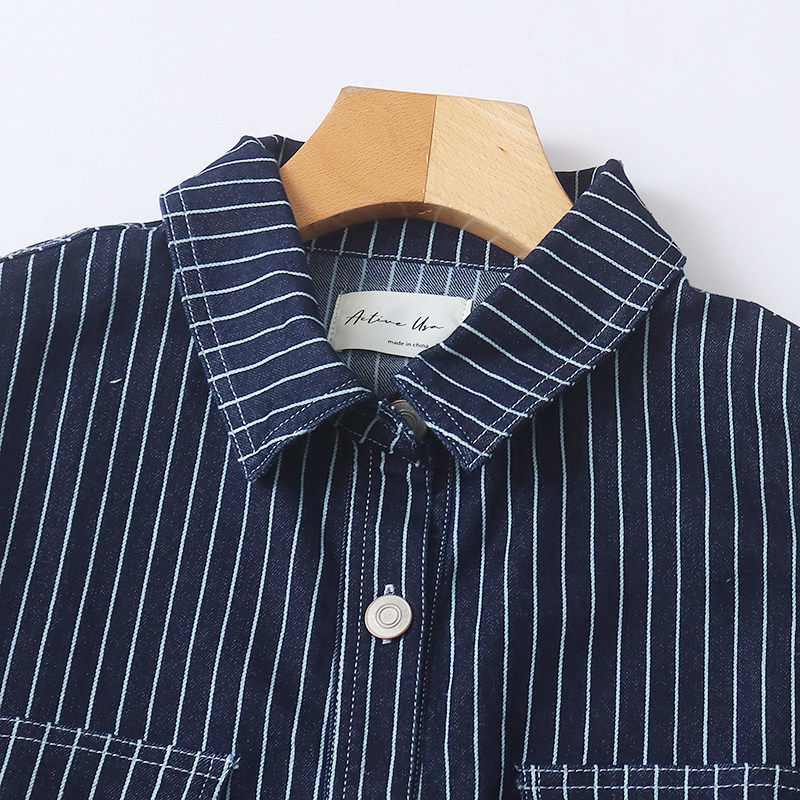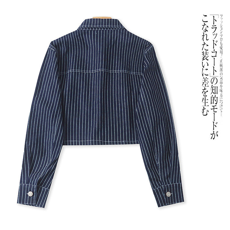 H5750外贸欧美单女士外套新款翻领单排扣竖条纹宽松短款时尚上衣