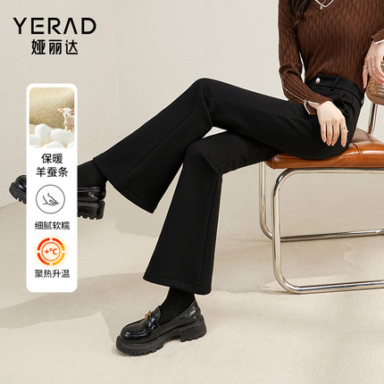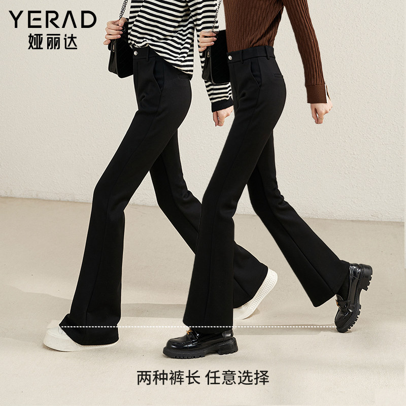 娅丽达女裤弹力微喇裤马蹄裤女新款秋冬小个子裤子黑色喇叭裤