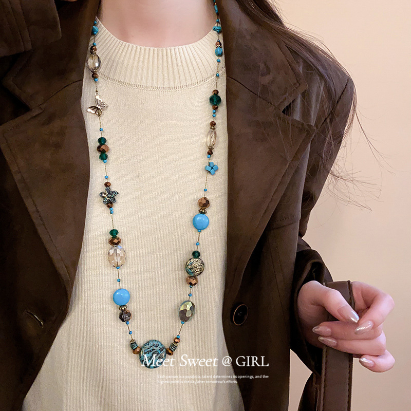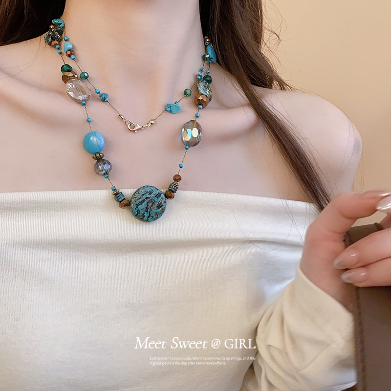 圆形人造石款叠戴项链长款女复古小众轻奢高级感毛衣链时尚配饰