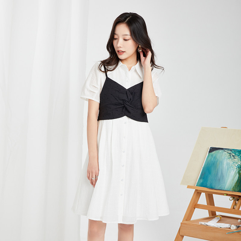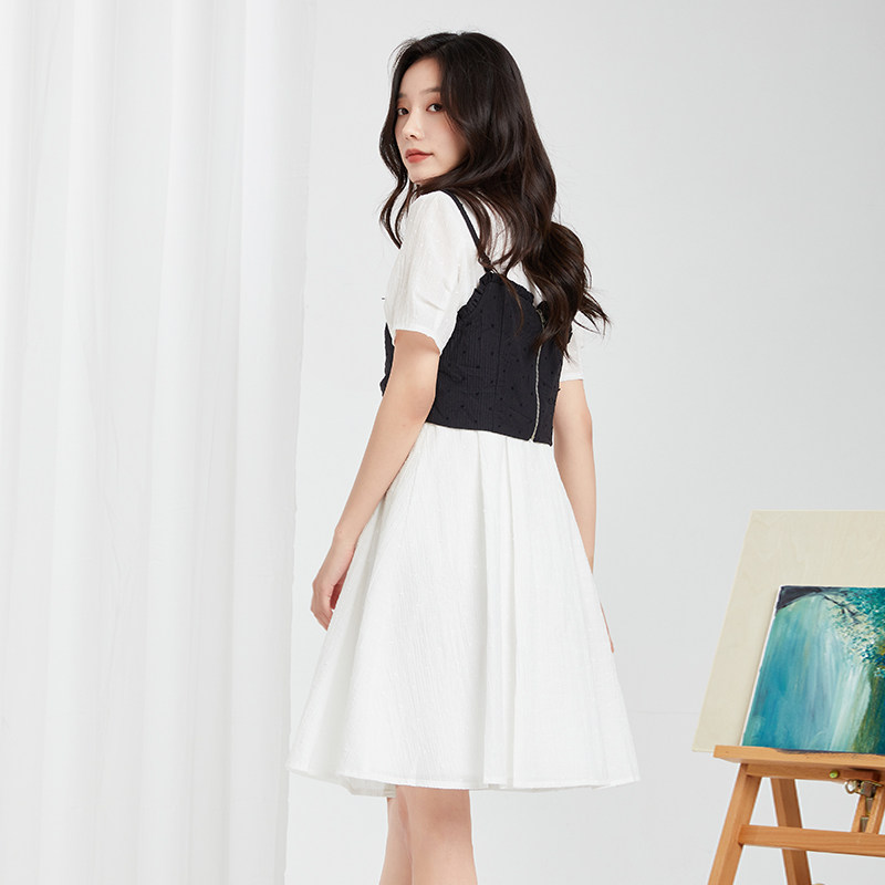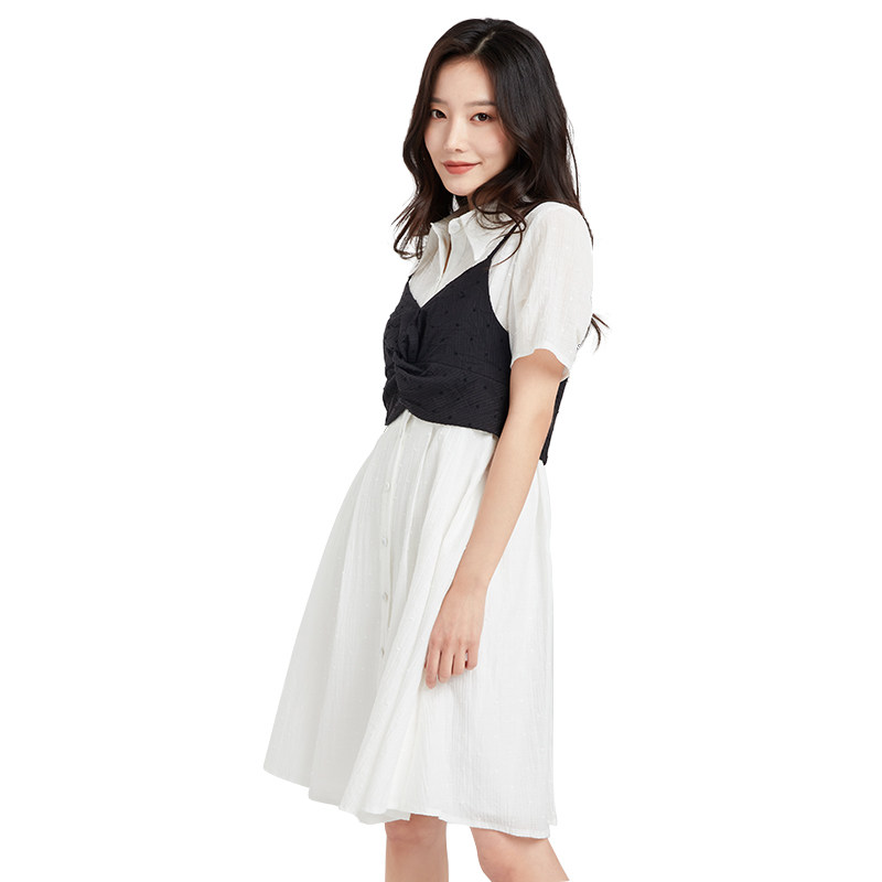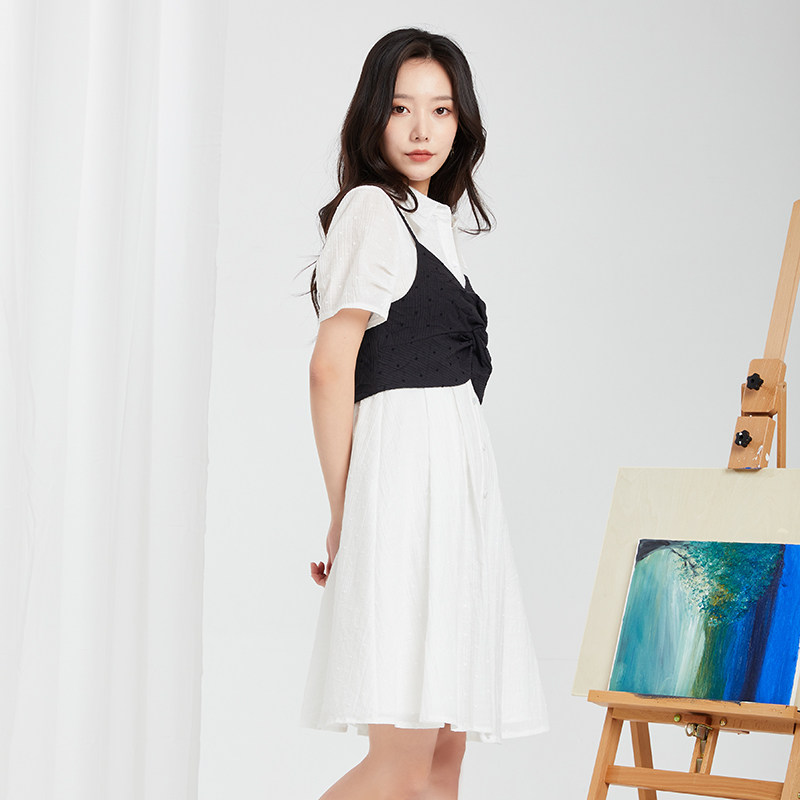 金苑套装连衣裙女夏季新款白色设计感吊带两件套短裙G222110
