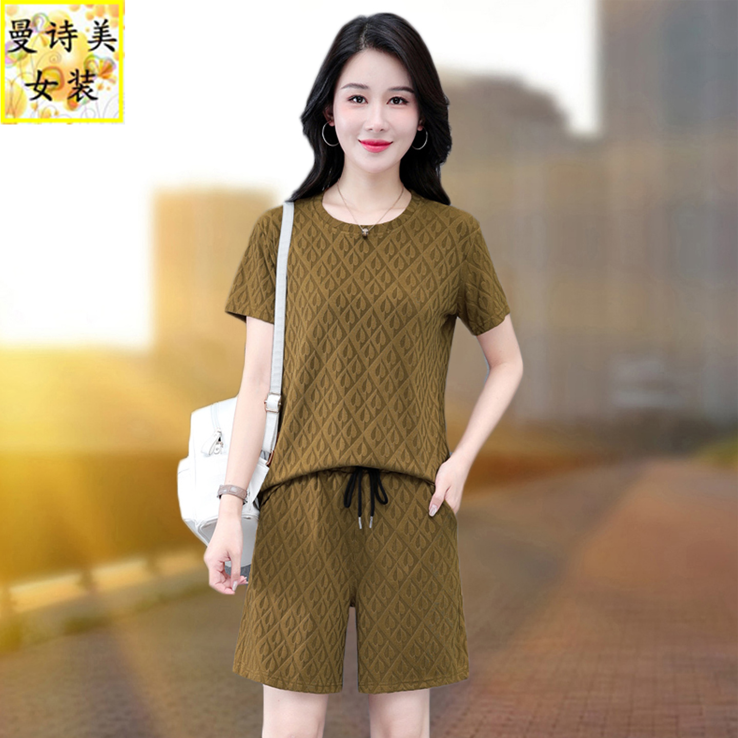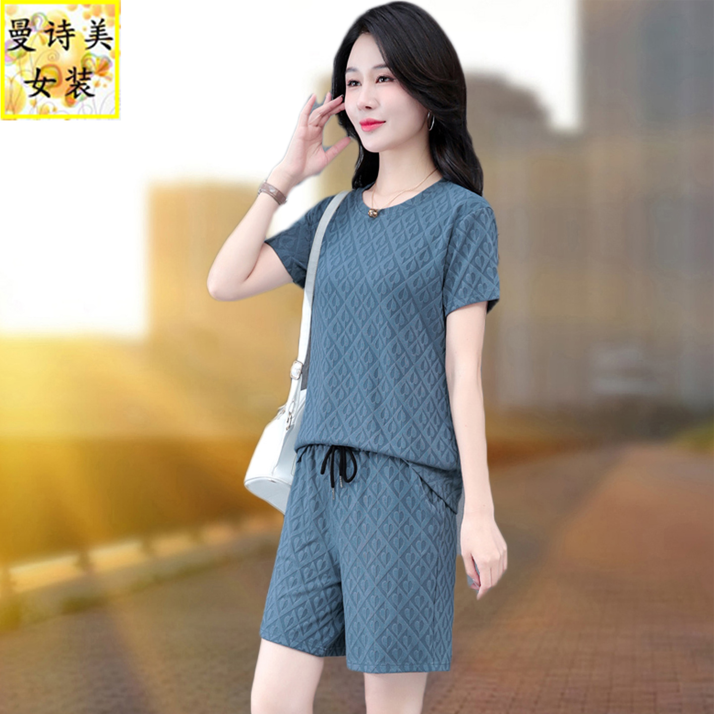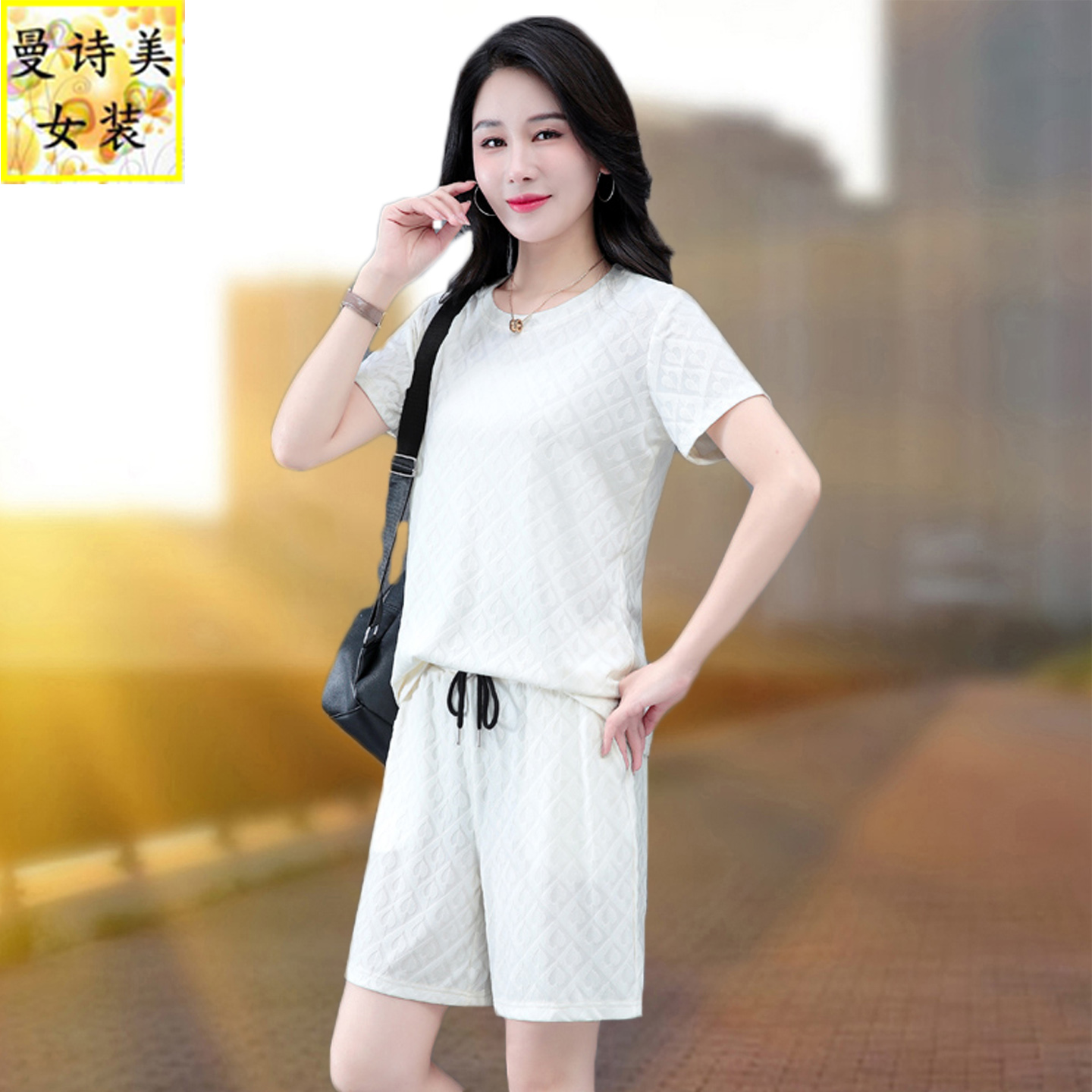 冰丝运动套装女夏季新款2025年中老年妈妈薄款透气短袖短裤两件套