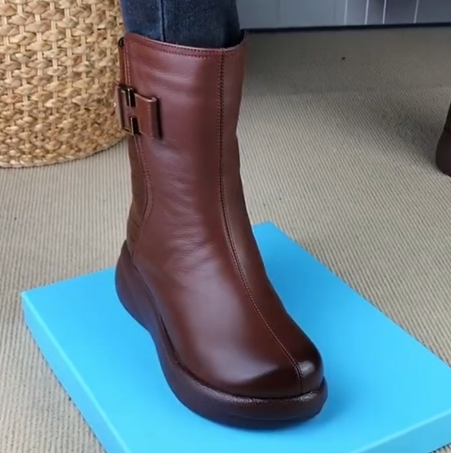 中筒马丁靴女2025年冬季新款皮毛一体羊毛雪地靴真皮舒适软底妈妈