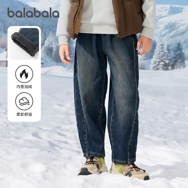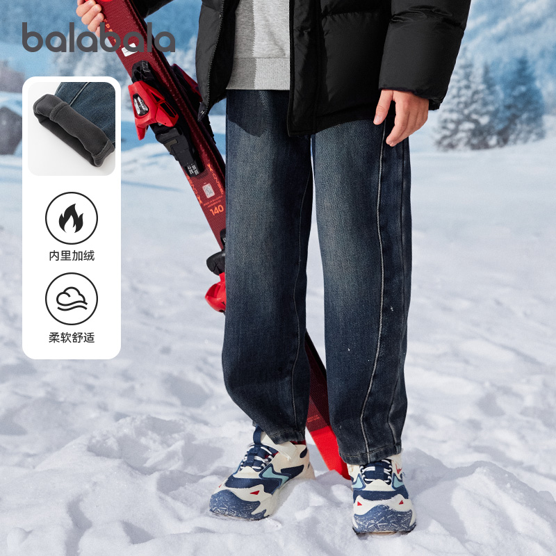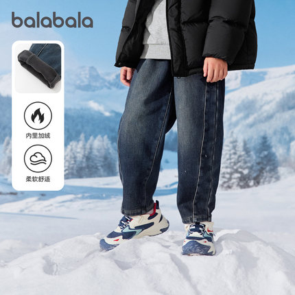 商场同款巴拉巴拉男童裤子儿童加绒牛仔裤大童弯刀裤2025冬季童装