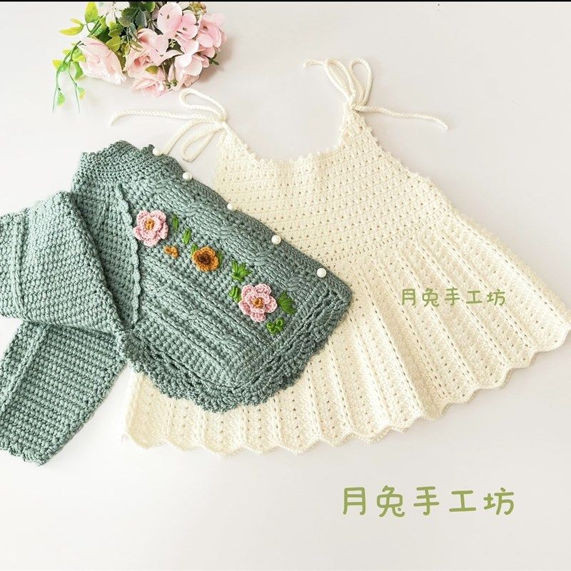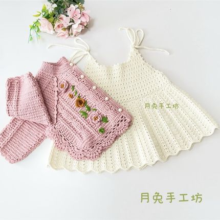 月兔手工坊 纯手工钩织宝宝外套吊带连衣裙套装女童毛线编织套裙