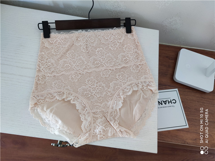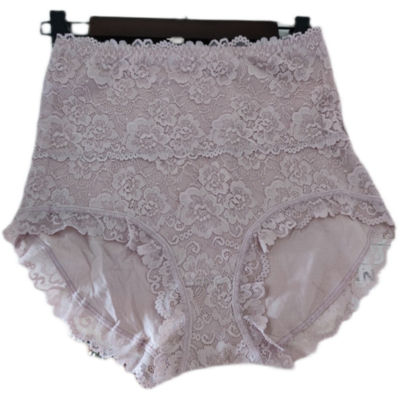 女收腹纯棉内裤提臀蕾丝边高腰纯色大码胖mm无痕收小腹外贸棉质