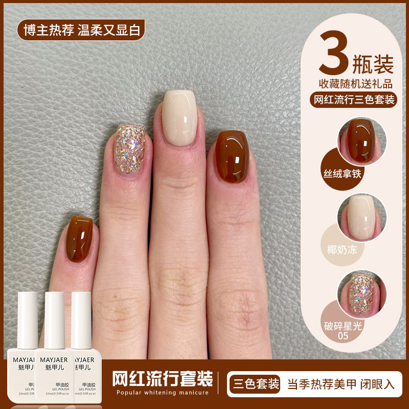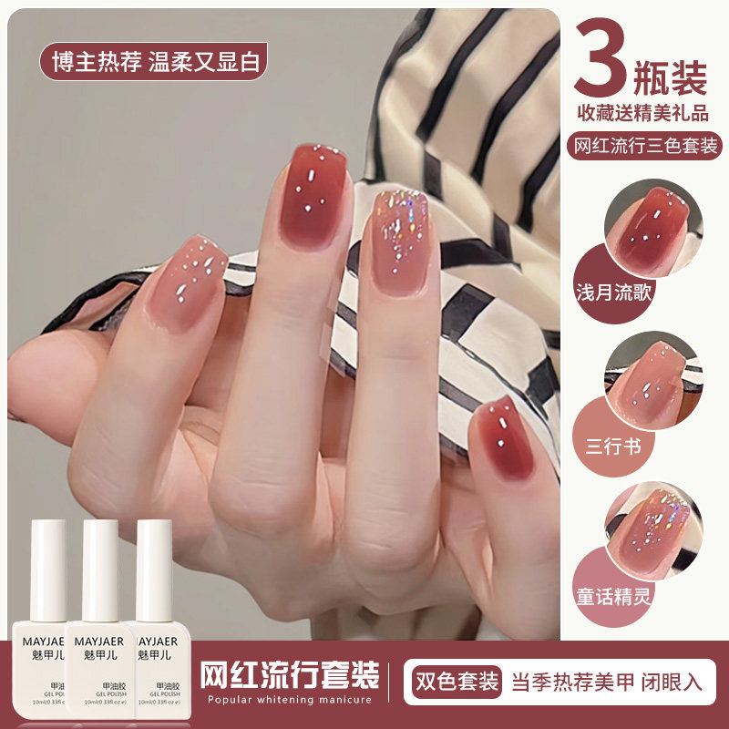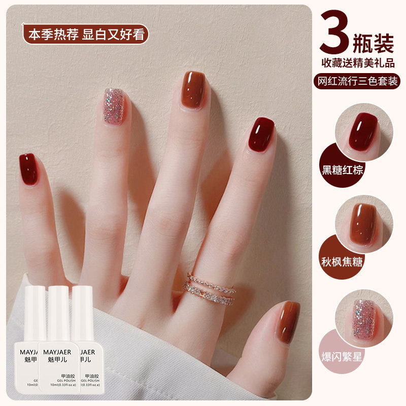 秋冬车厘子酒红色指甲油胶2026年新款显白爆闪亮片套装美甲店专用