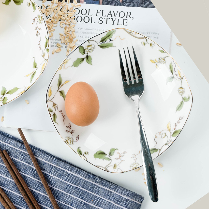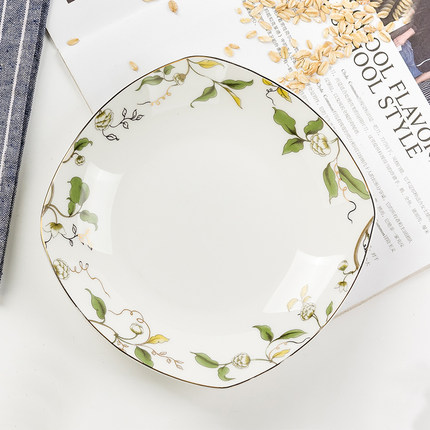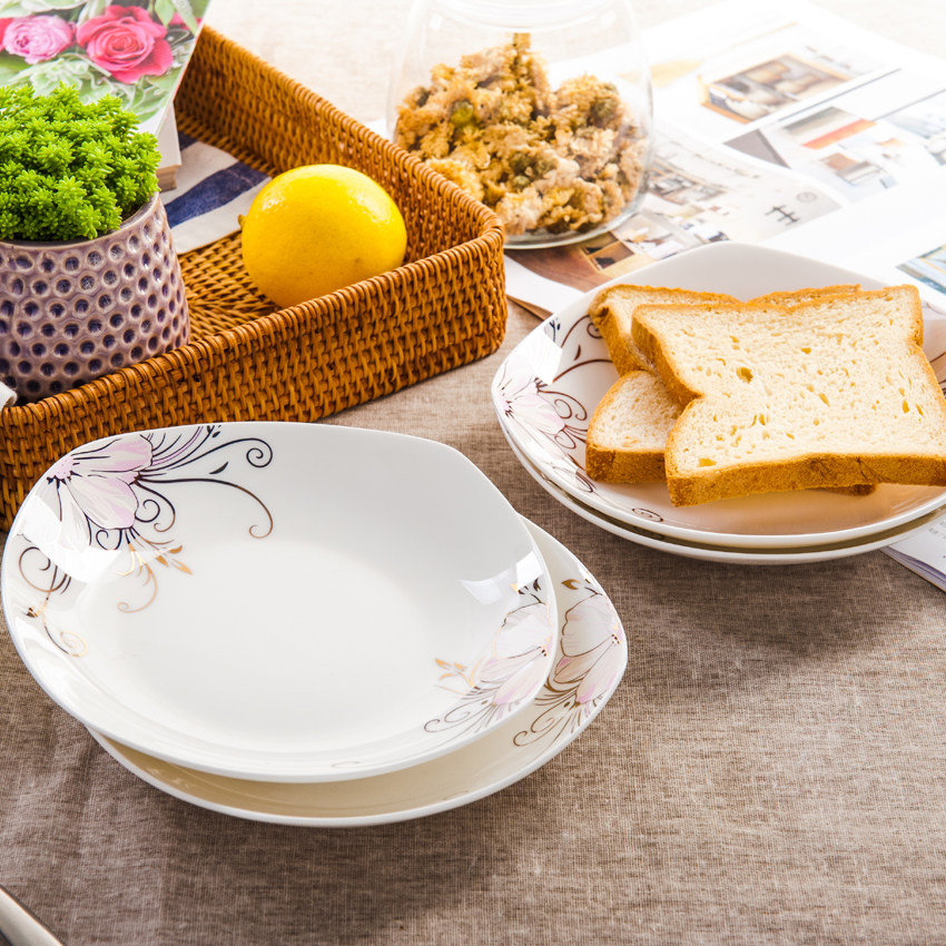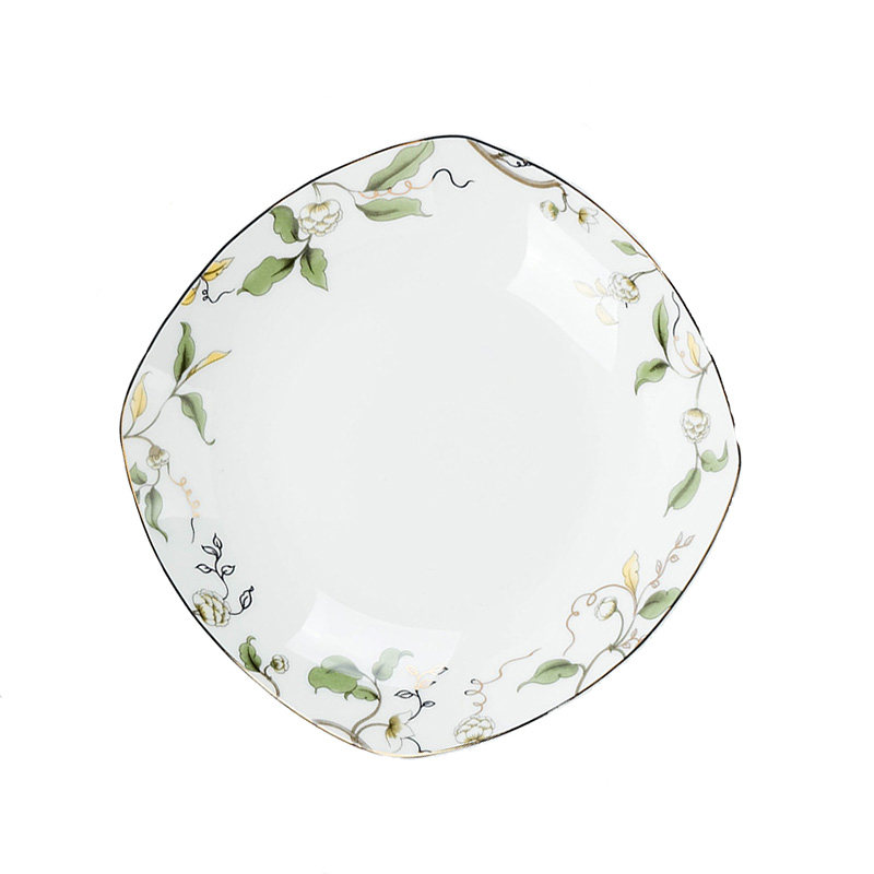 热卖唐山骨质瓷7英寸深盘水果盘香榭丽舍7寸方汤盘骨瓷中式方盘子