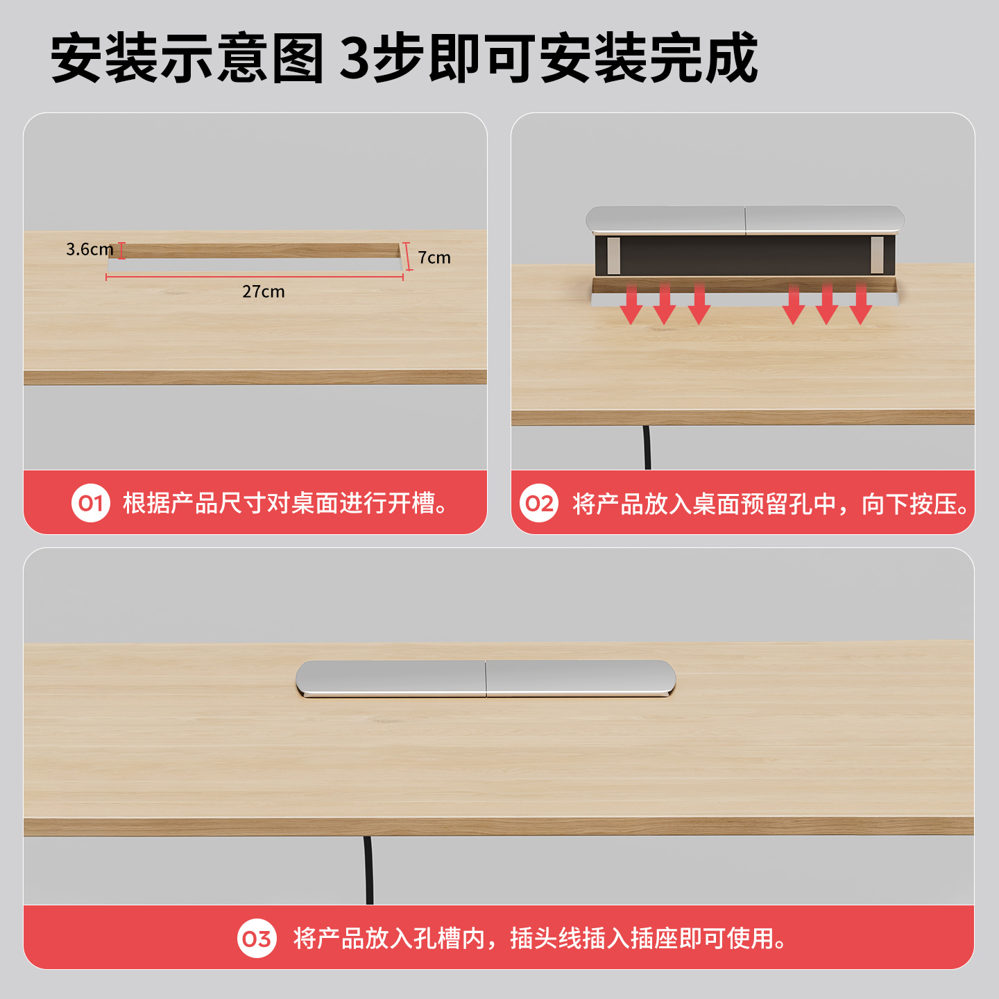 嵌入式插座内嵌橱柜子插排办公电脑桌面隐藏式多孔餐边柜接线板