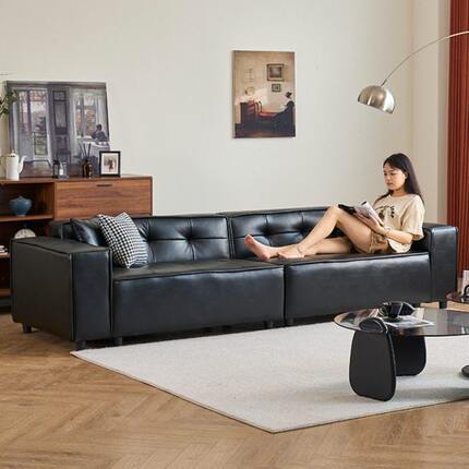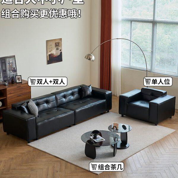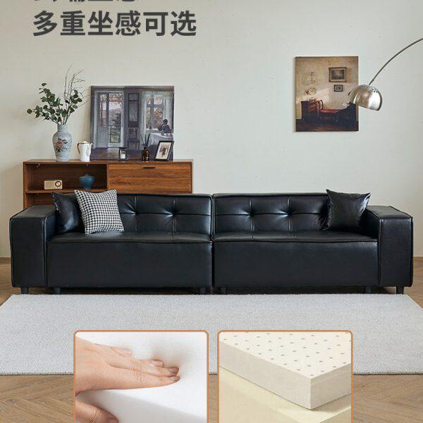 吐司皮艺沙发客厅小户型意式极简面包豆腐块四人位黑色皮沙发直排