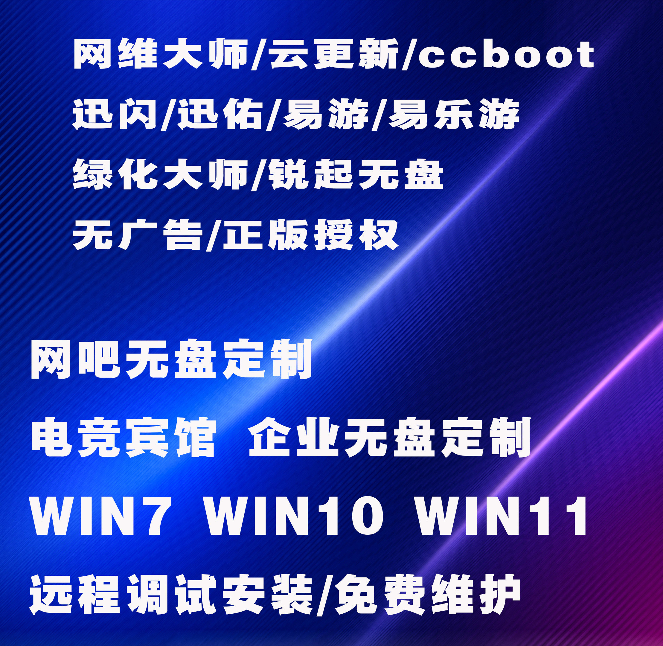 锐起无盘/网维大师/宾馆企业网吧无盘/云更新纯净系统/无盘包安装