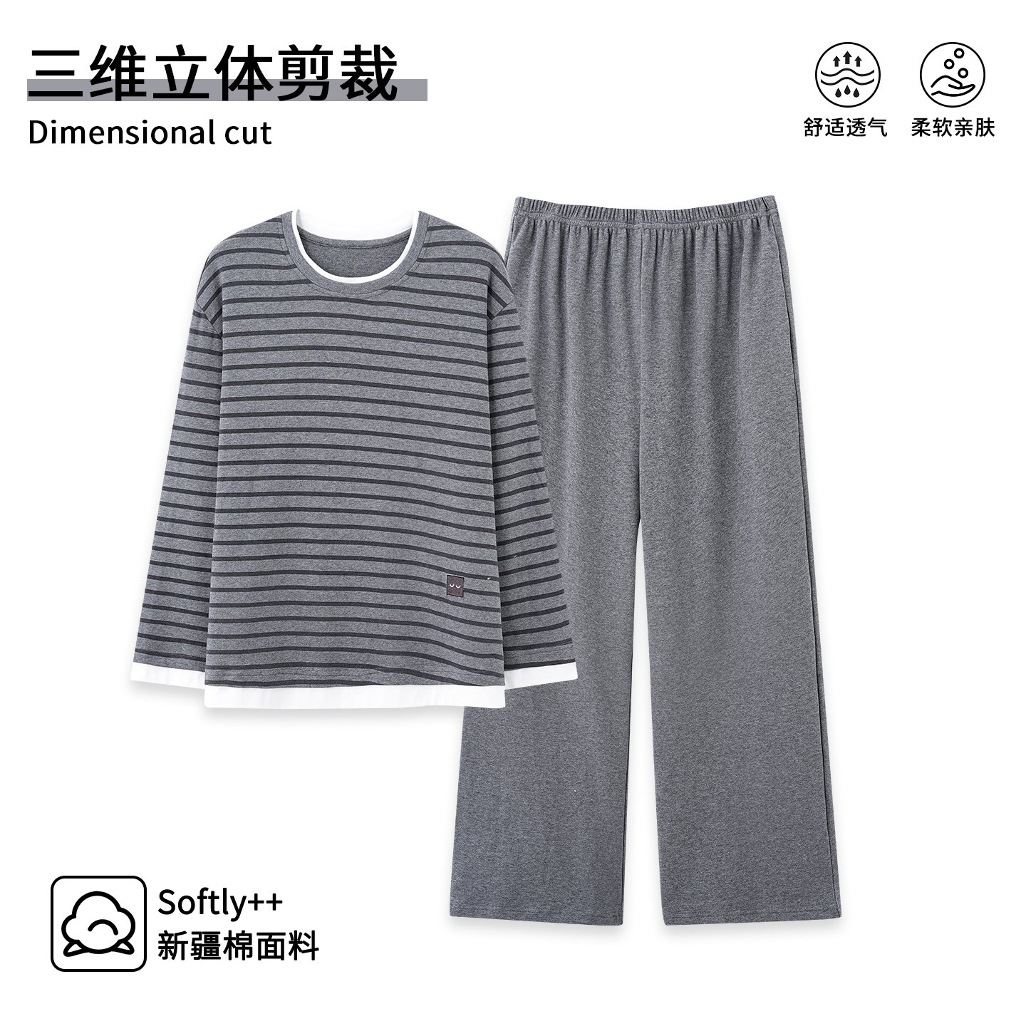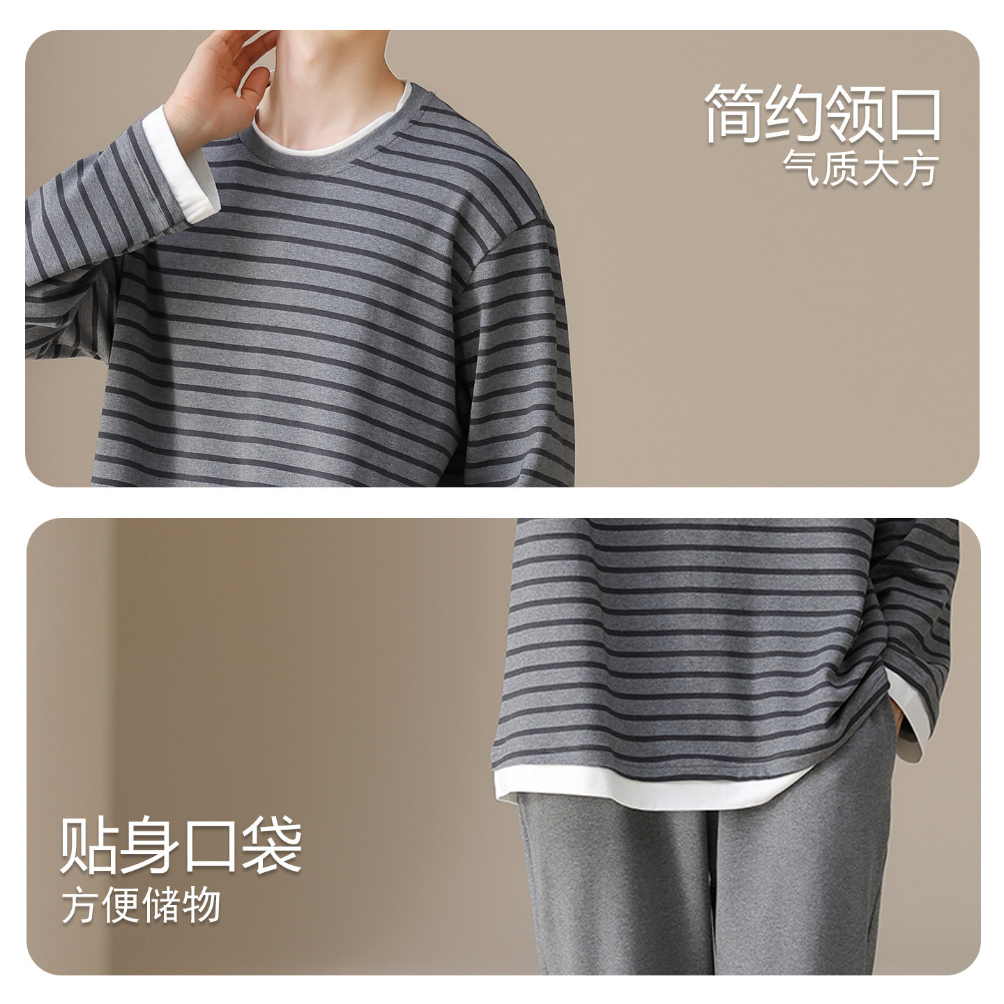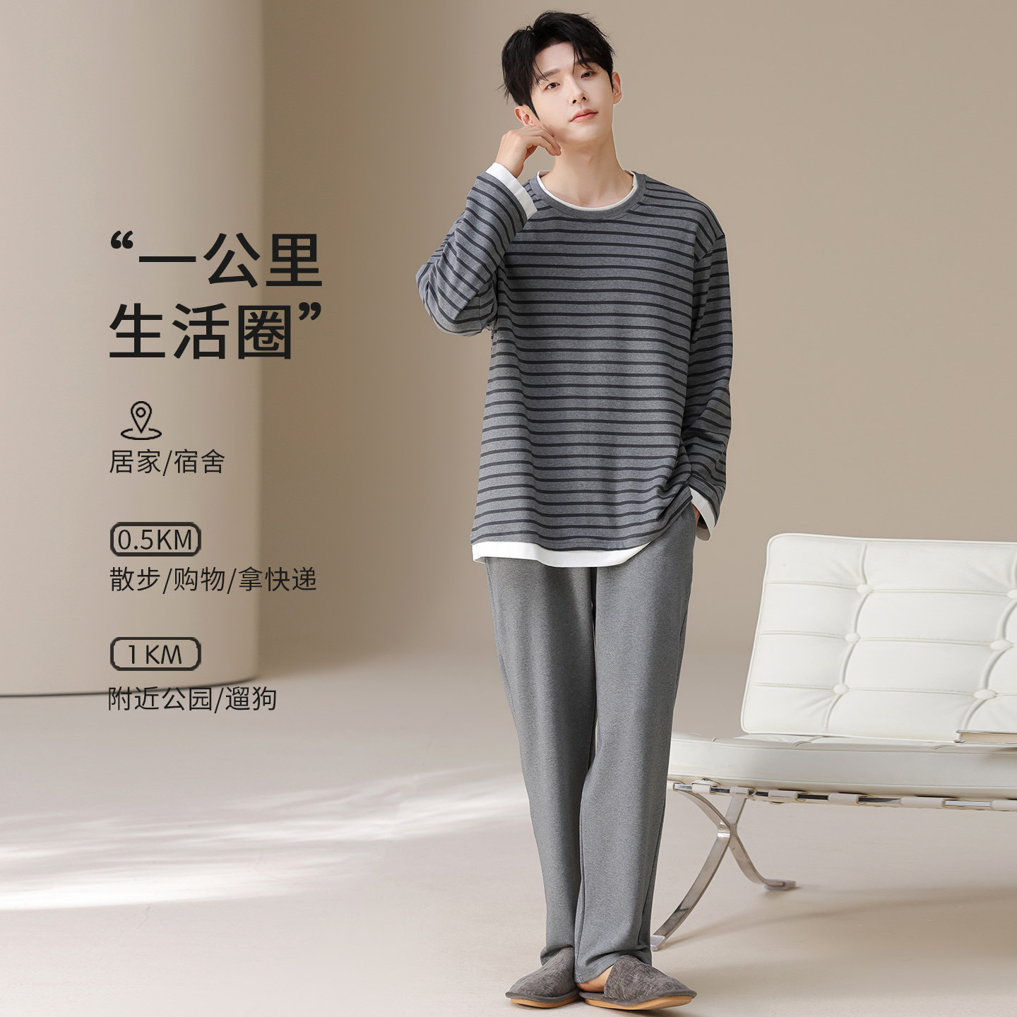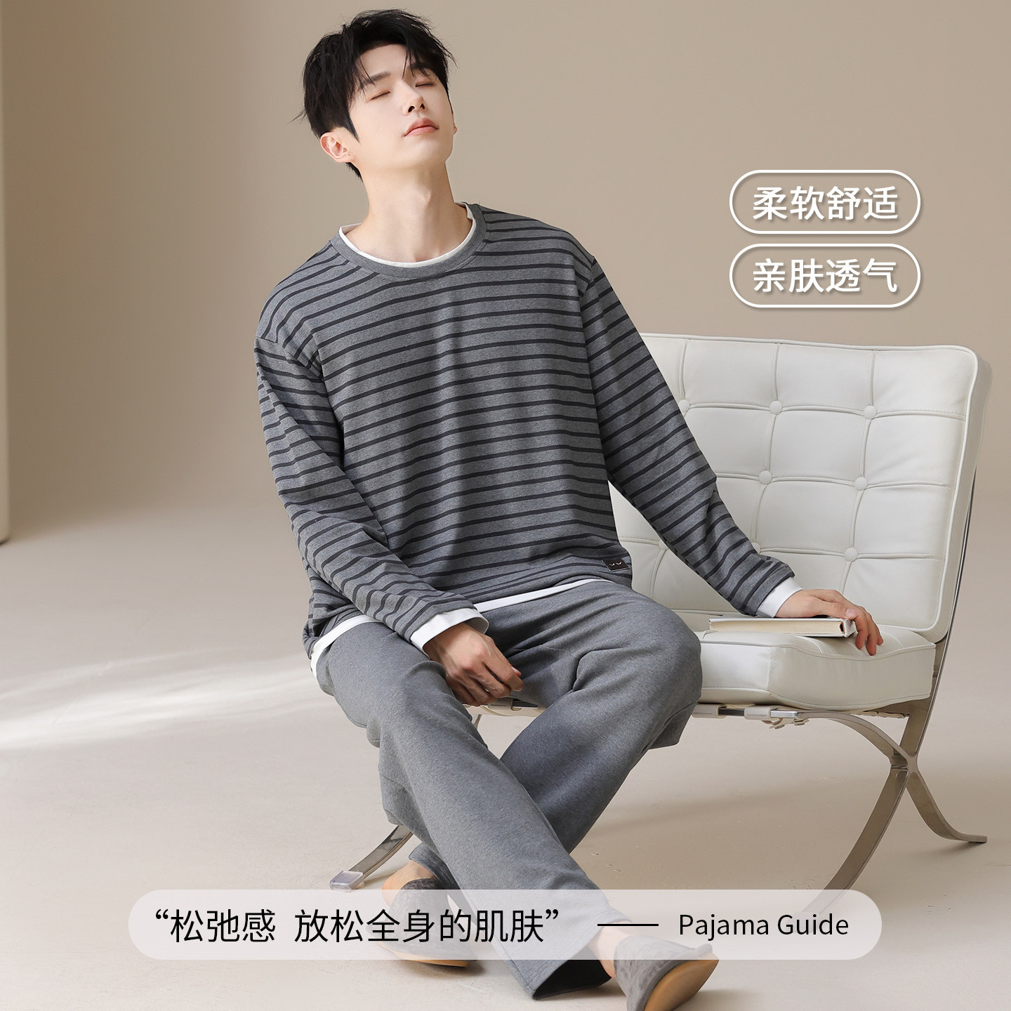 芬腾可安睡衣男款男士冬季纯棉布料100全棉长袖加大码条纹家居服
