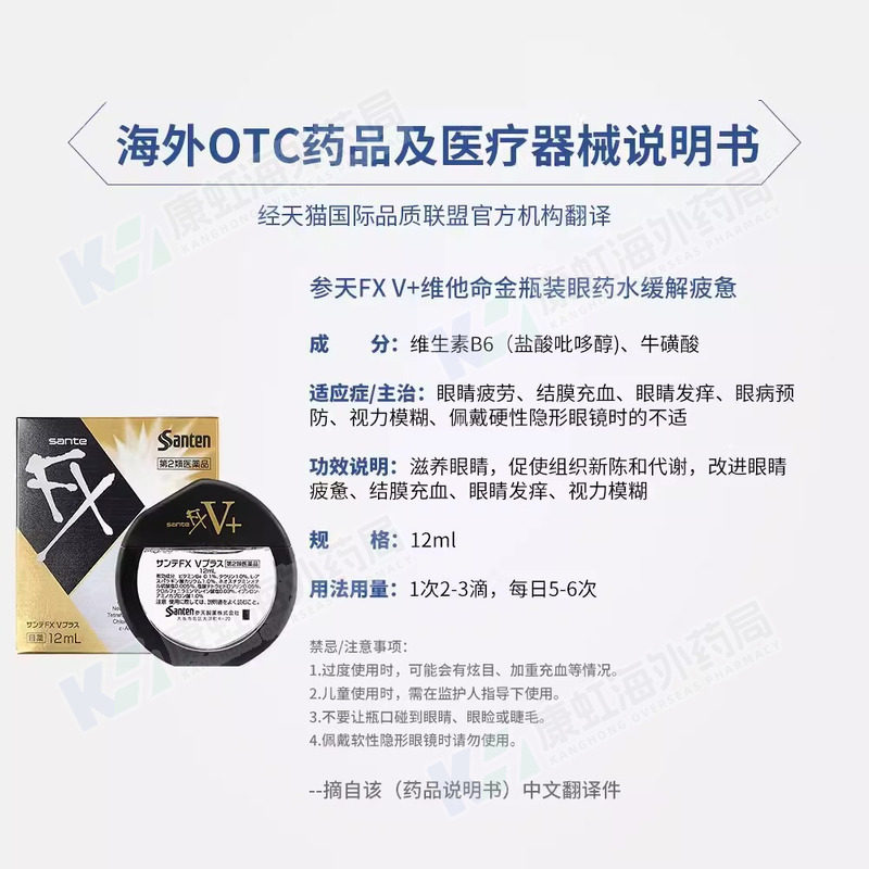 日本参天fx金装眼药水缓解眼疲劳去红血丝消炎人工玫瑰洗滴眼液水