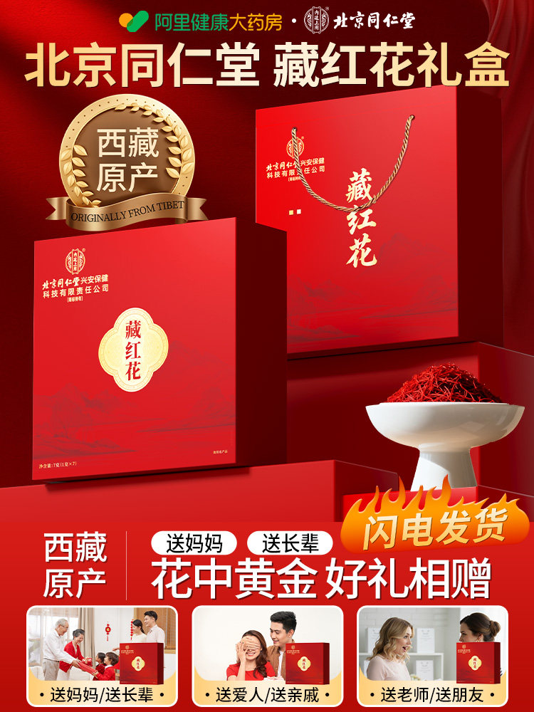 北京同仁堂西藏藏红花正品特级茶送礼盒年货节新年礼物官方长辈