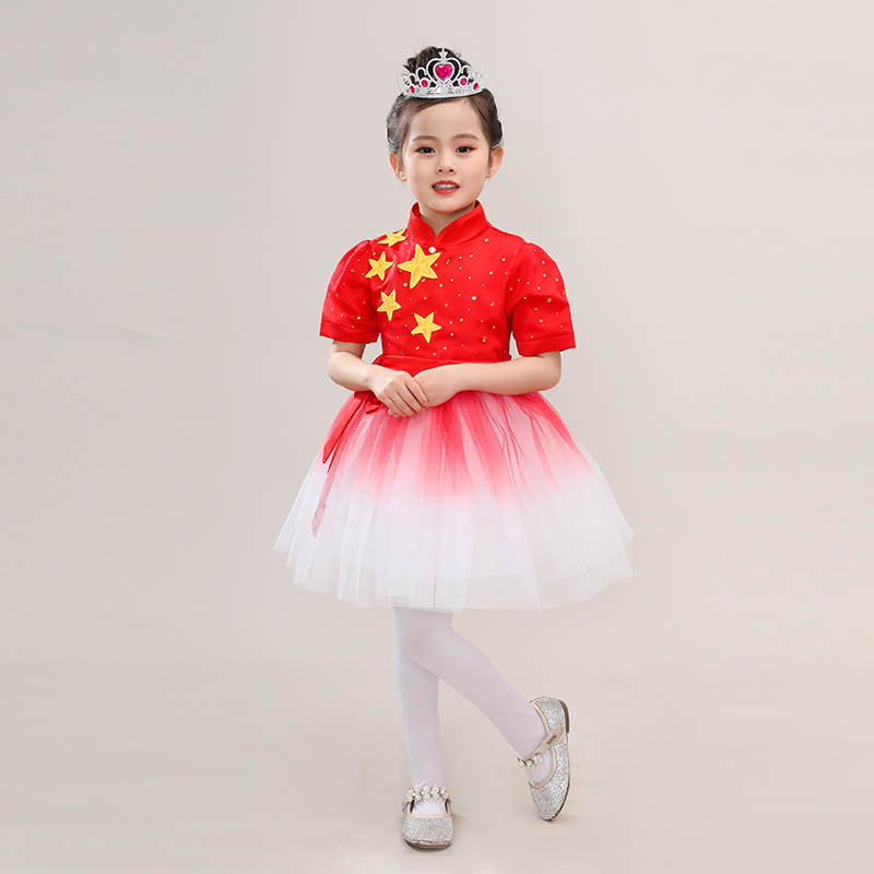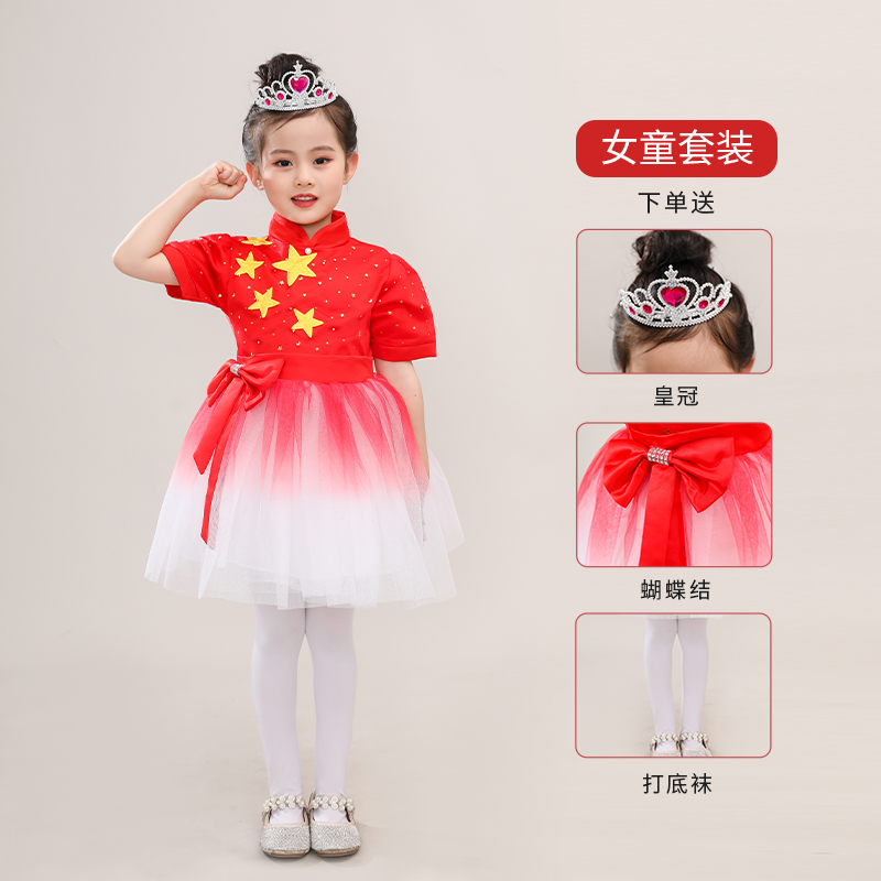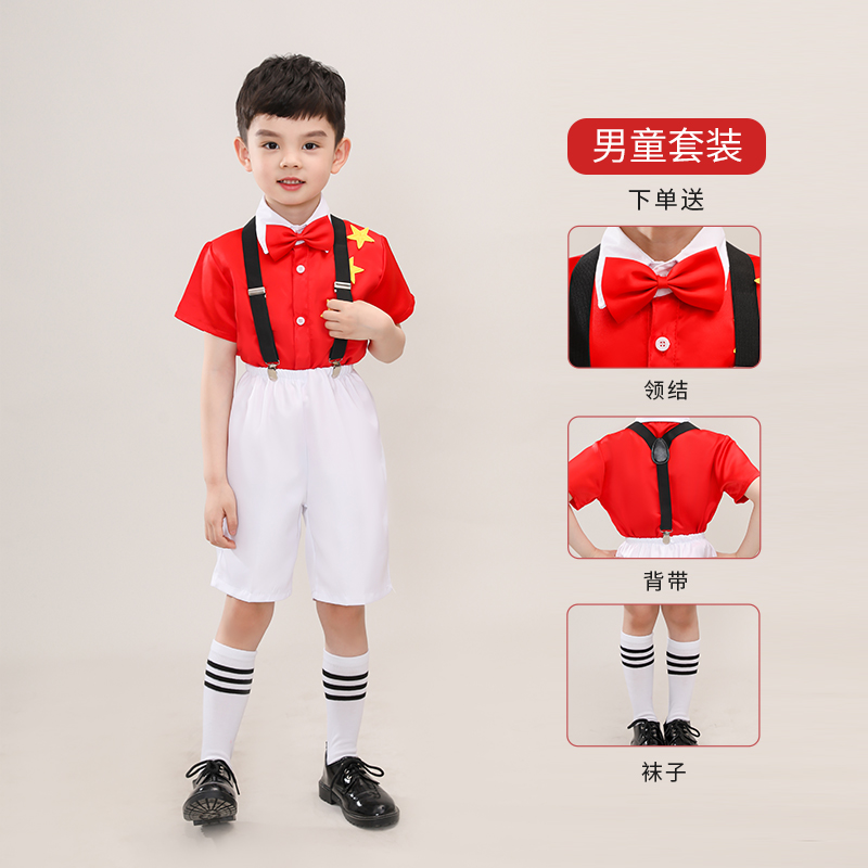 儿童红色合唱服十一演出服男女童礼服幼儿园毕业照诗歌朗诵比赛新
