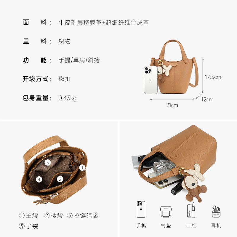 天美意真皮水桶包2025新款