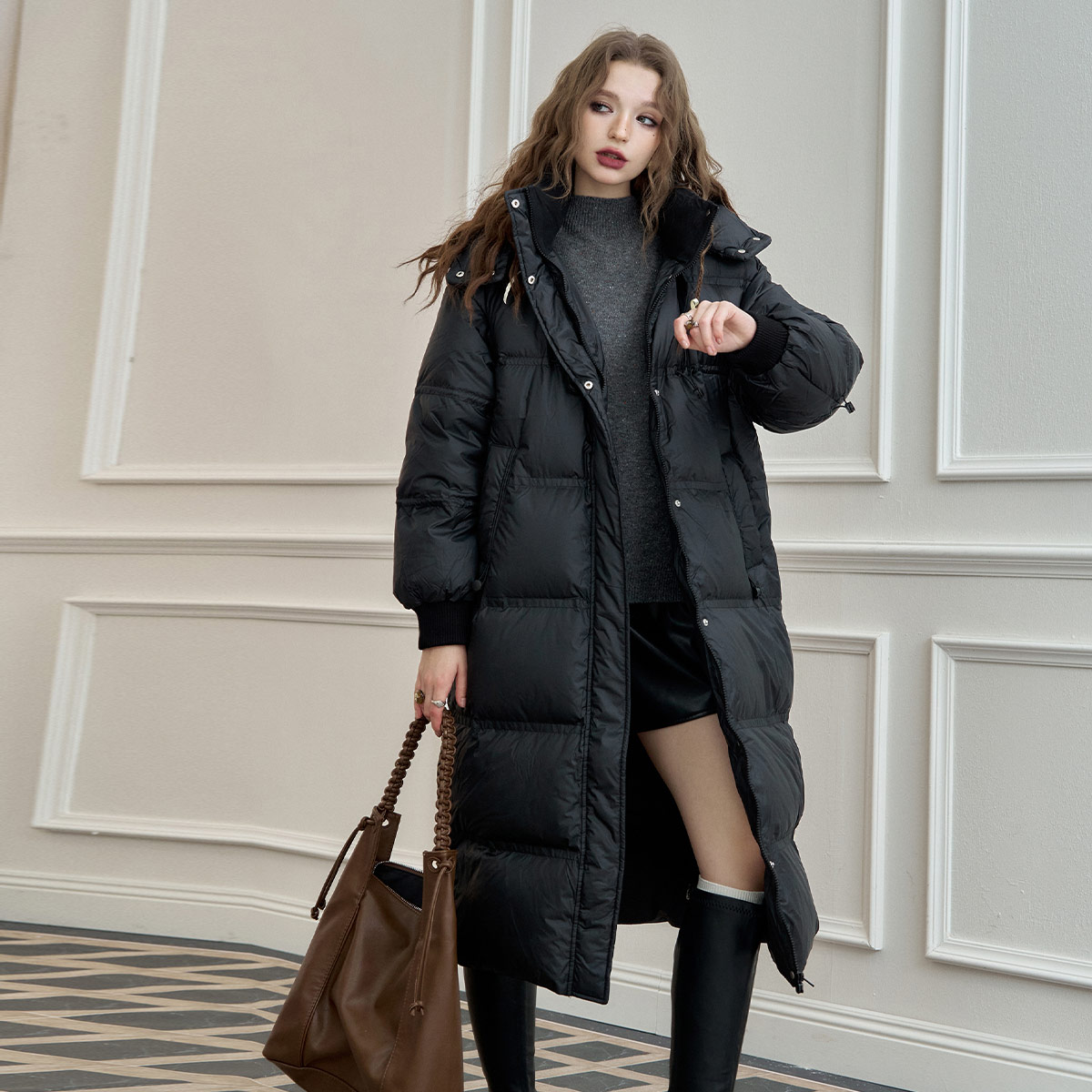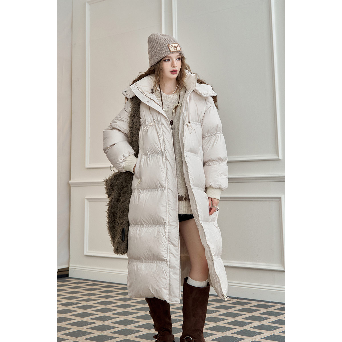 妖精的口袋90%白鸭绒长款连帽羽绒服女2025年秋冬新款宽松面包服