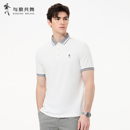 【顺滑弹力】与狼共舞桑蚕丝翻领短袖T恤男2025夏季款透气polo衫