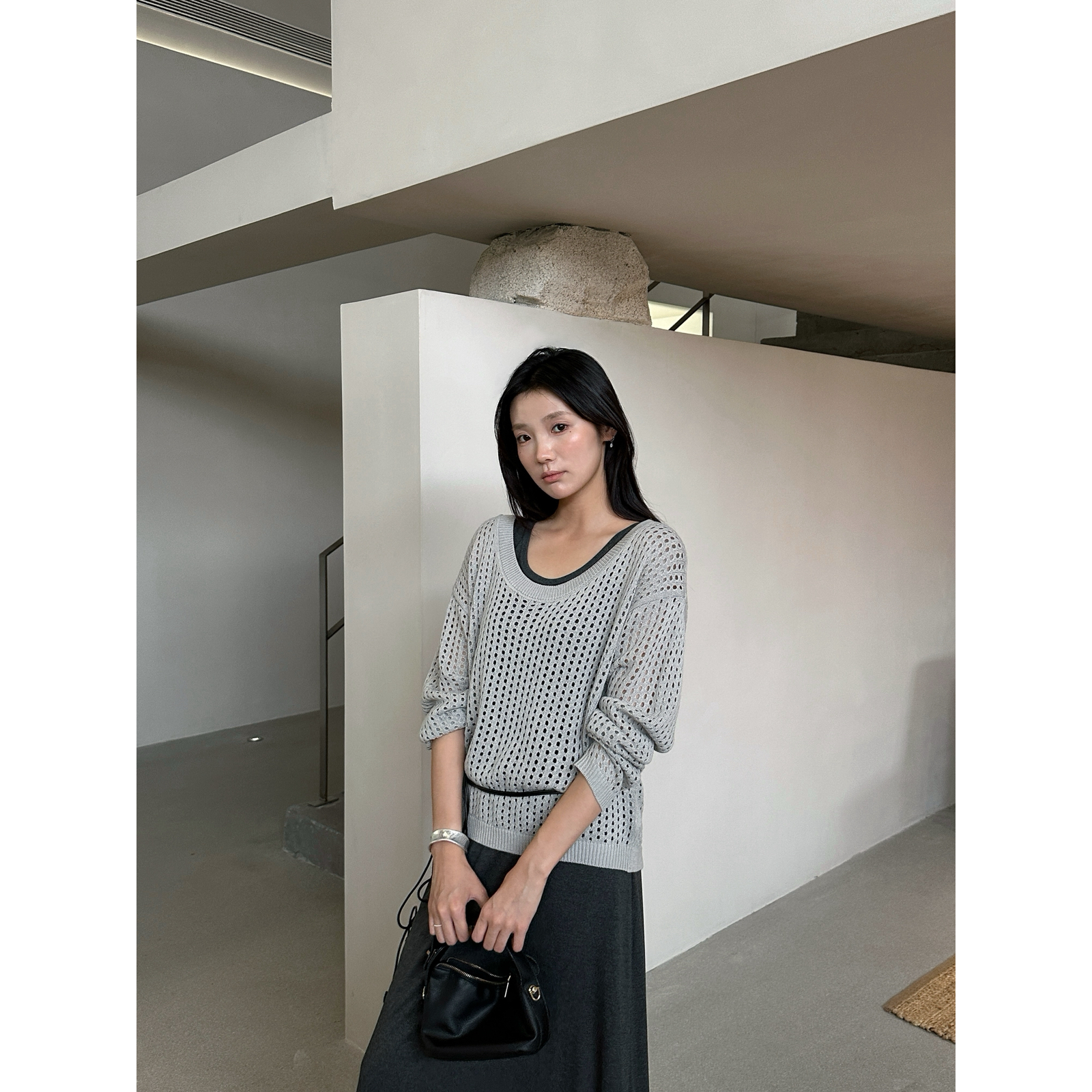BEFORE SUNSET 日落-简约镂空圆领针织衫+背带裙套装(G25A-W9232Y