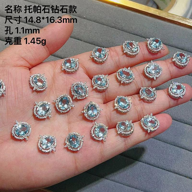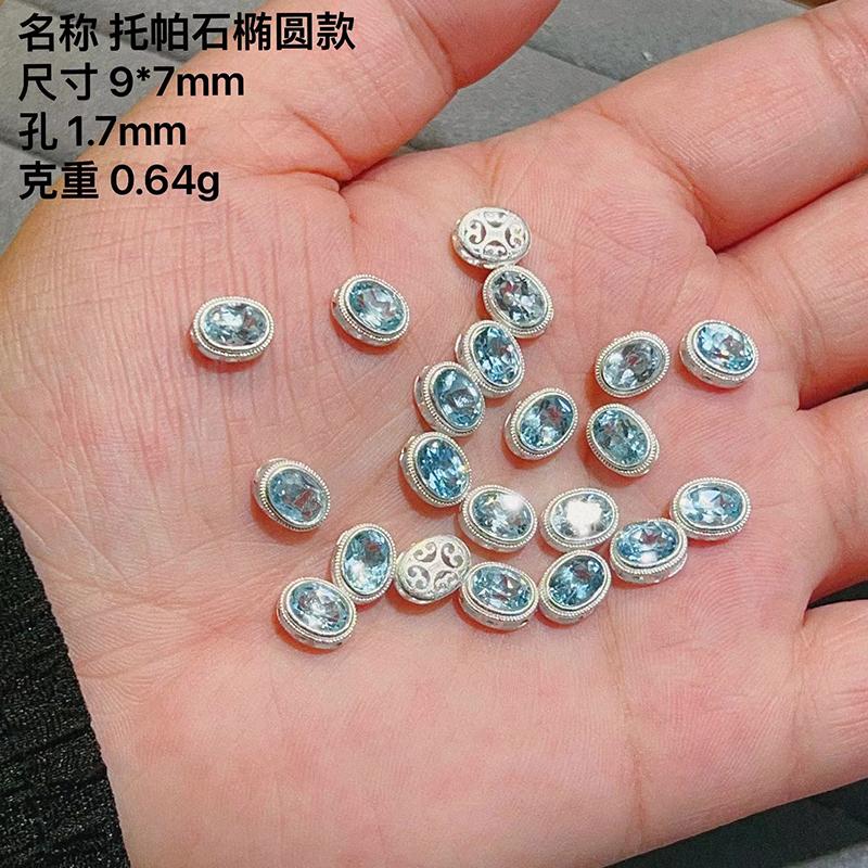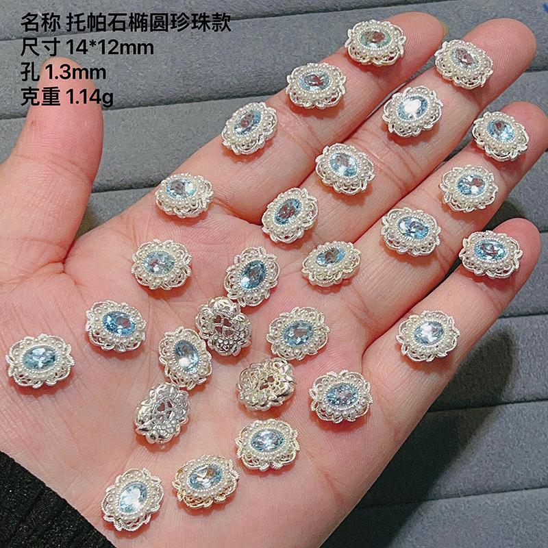天然托帕石豆豆椭圆珍珠款配件s925银镀金项链项链串饰diy半成品