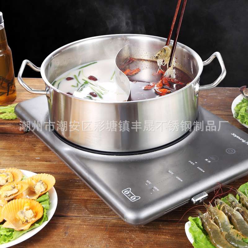 加厚款家用火锅复合底不锈钢直型鸳鸯锅清汤火锅电磁煤灶可用