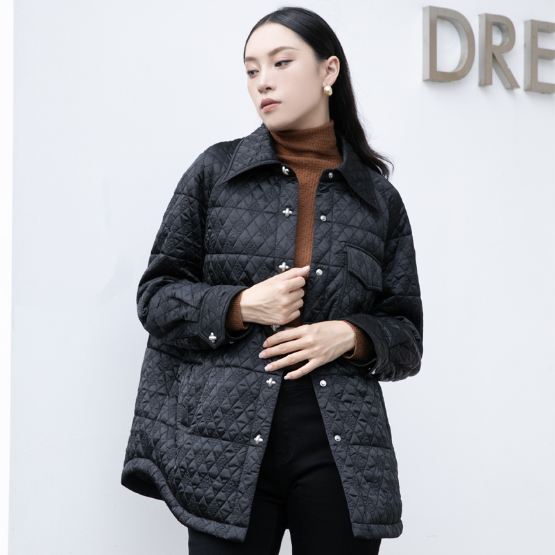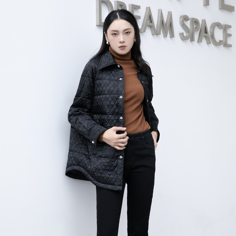 特瑞娜秋羽绒翻领轻薄时尚短款保暖外套高端鹅绒服品牌女装