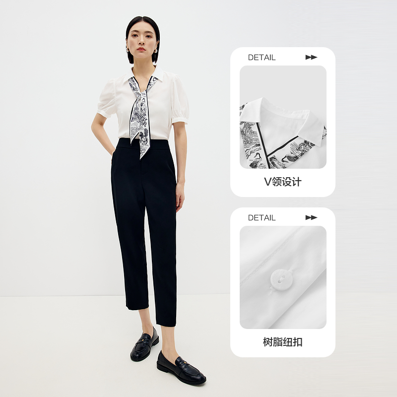水云间白色天丝衬衫极简女式系带七分袖衬衣知识分子风上衣2025夏