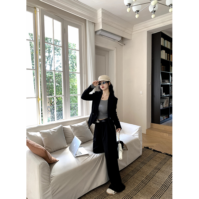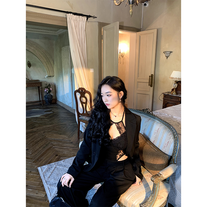 肉装小cherry 满分西装 微胖翻驳领带垫肩双排扣收腰修身西装外套