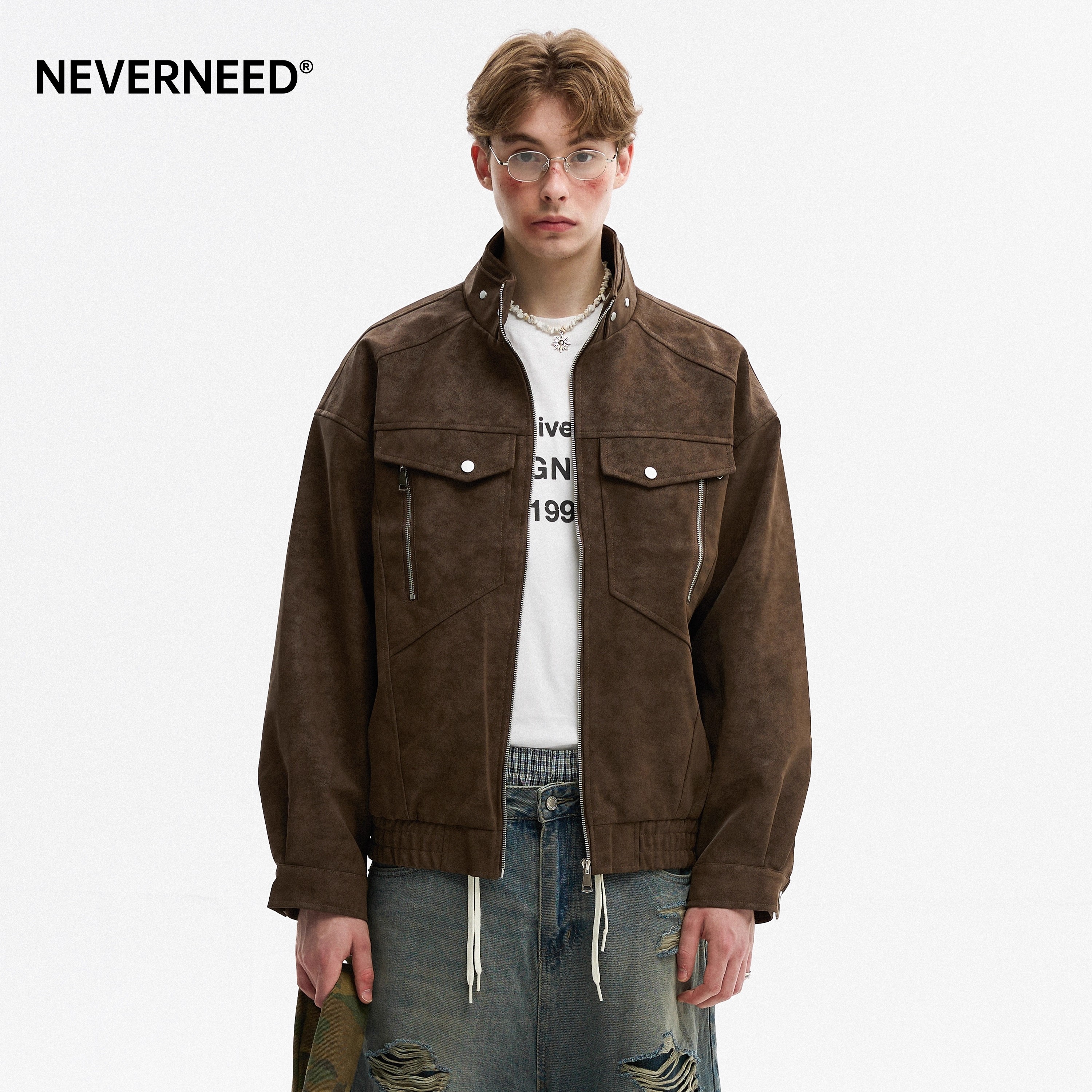 2025秋冬款美式高街雾面pu皮衣男女boxy短款解构拼接工装夹克外套