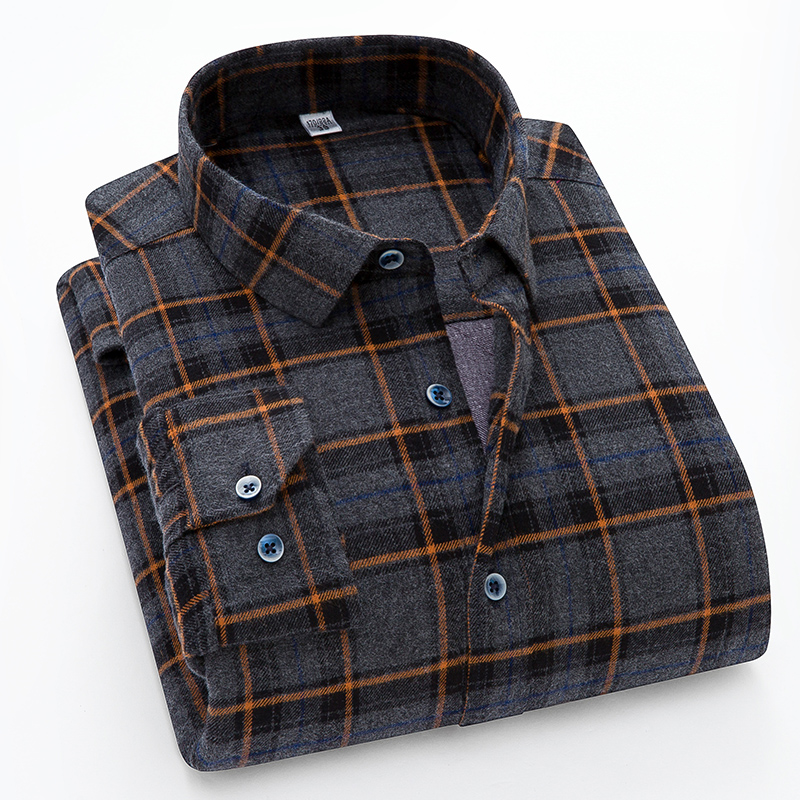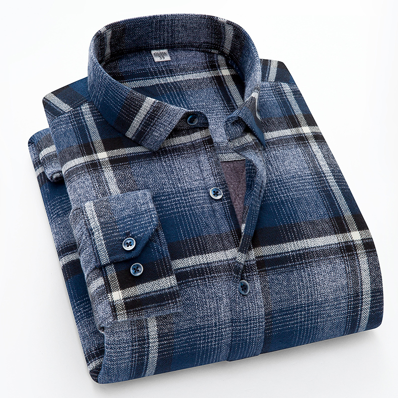 男士保暖内衣格子纯棉加绒加厚羊毛衬衫内胆夹棉衣中青年打底上衣