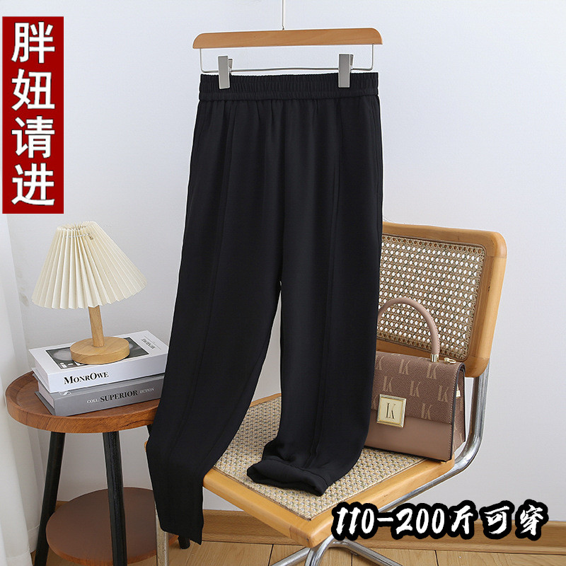 2025秋季新款大码女裤胖mm松紧腰垂感胖妹妹显瘦休闲九分裤 200斤