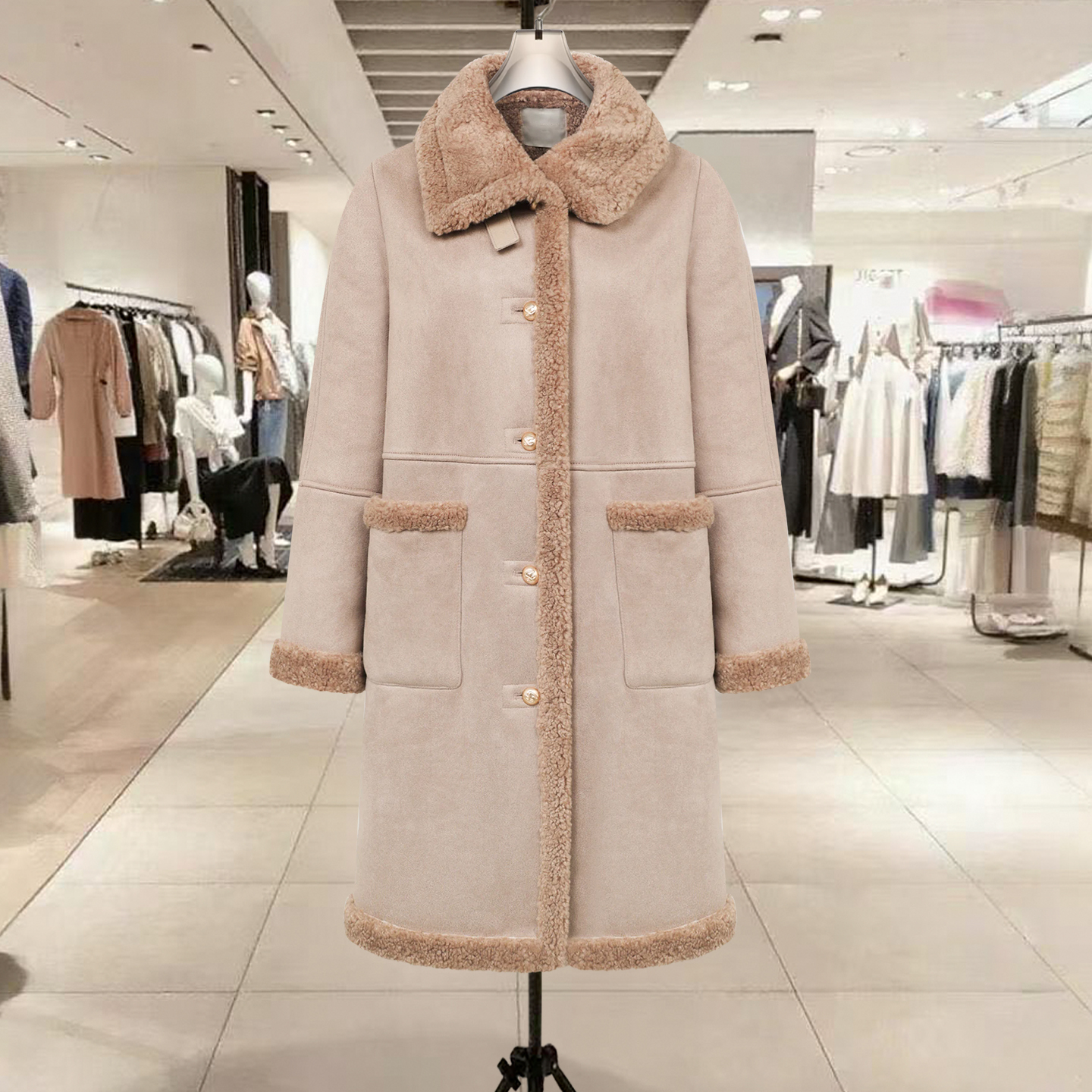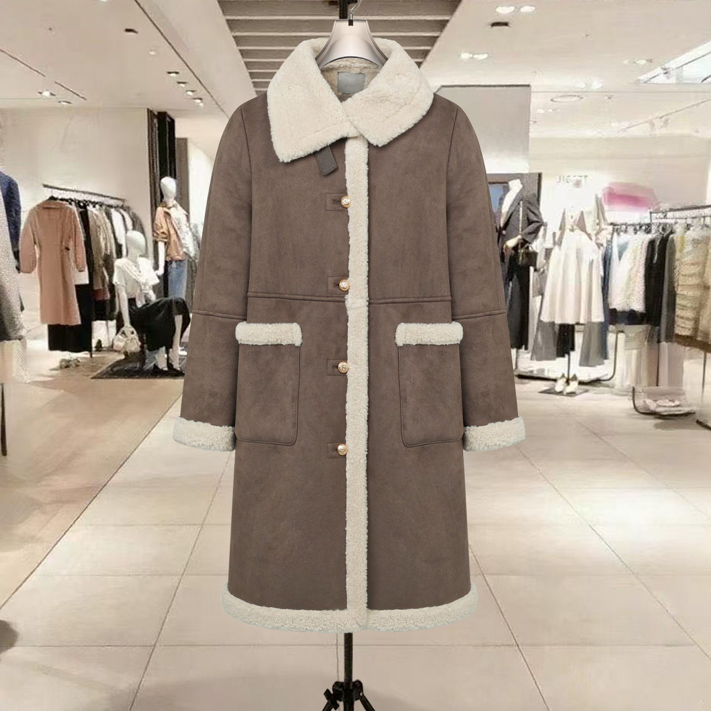 厚实保暖麂皮绒皮毛一体外套女