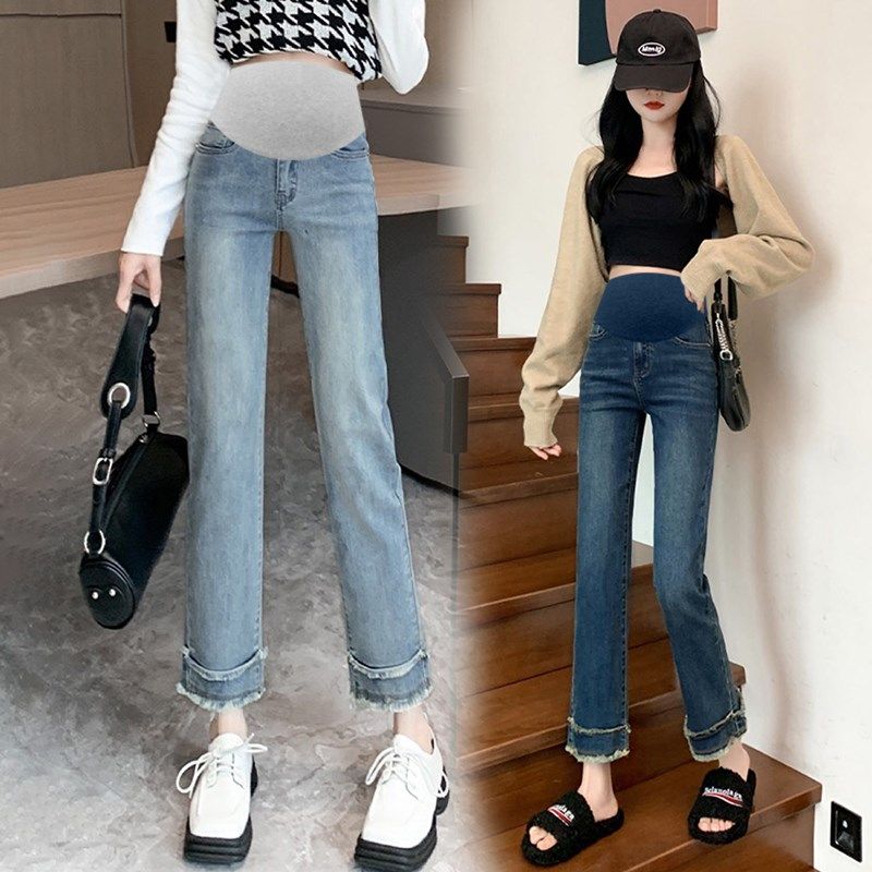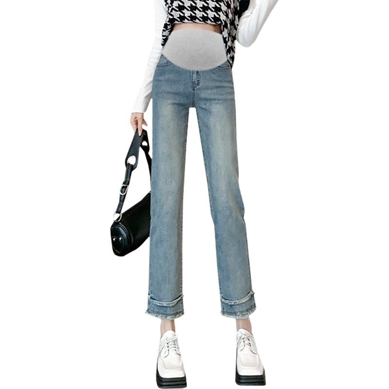 孕妇裤子外穿春秋款直筒烟管裤夏季薄款休闲打底牛仔裤女九分夏装