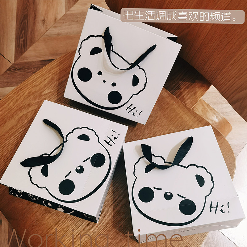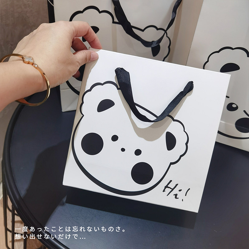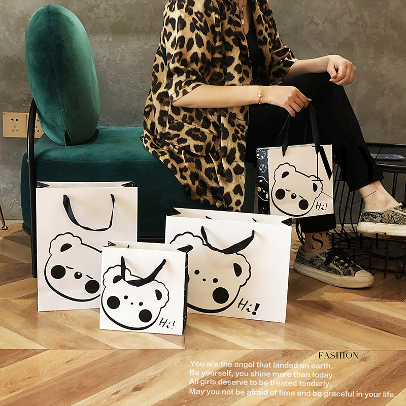 手绘风表情熊手提袋定制服装店礼品袋高档纸袋定做礼袋购物包装袋