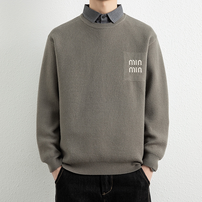 侨迪蒙拉高品质衬衫领针织衫男士秋冬季保暖假两件毛衣加厚内搭