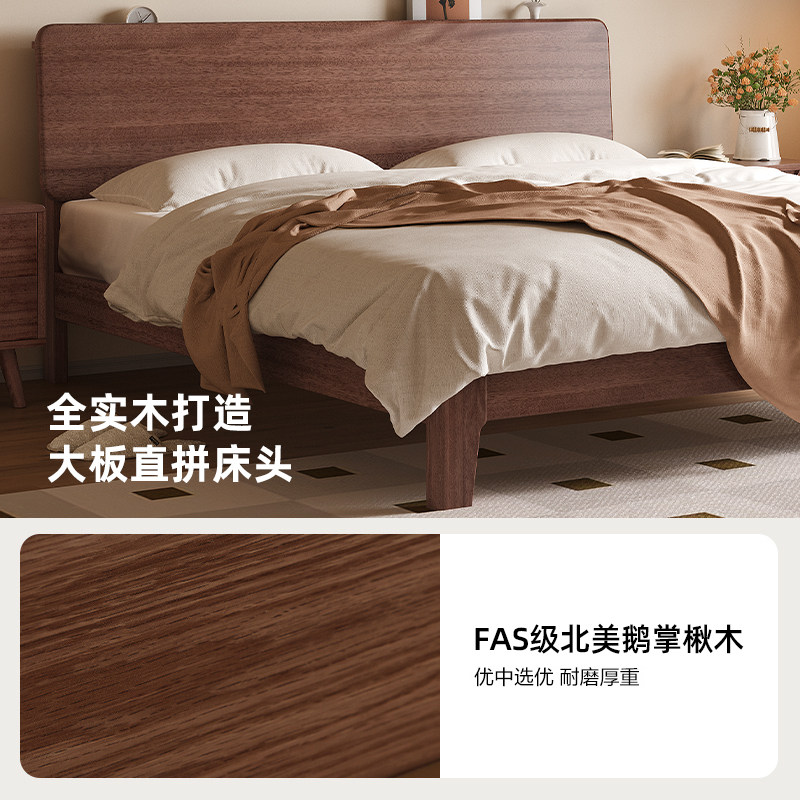 天坛家具北美鹅掌楸木全实木床简约现代主卧双人床1.5米1.8米大床