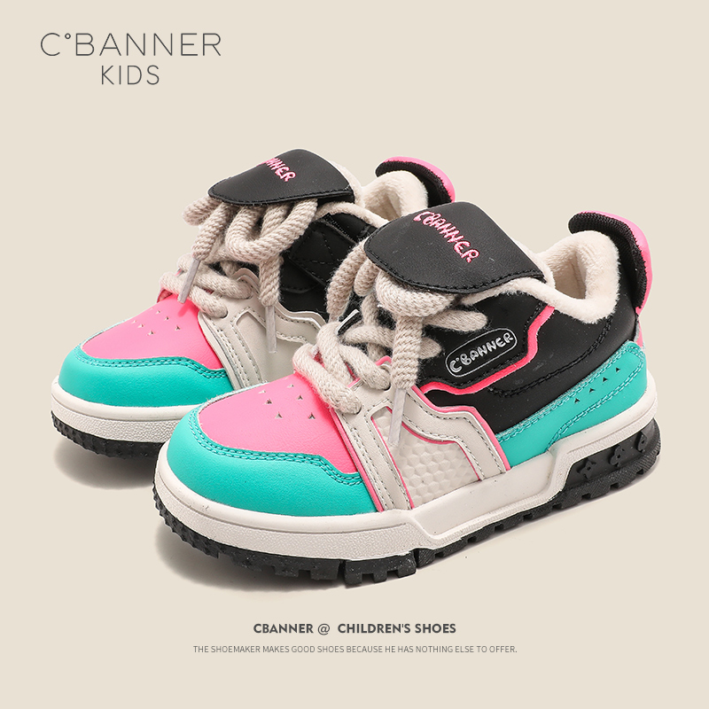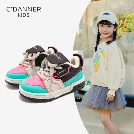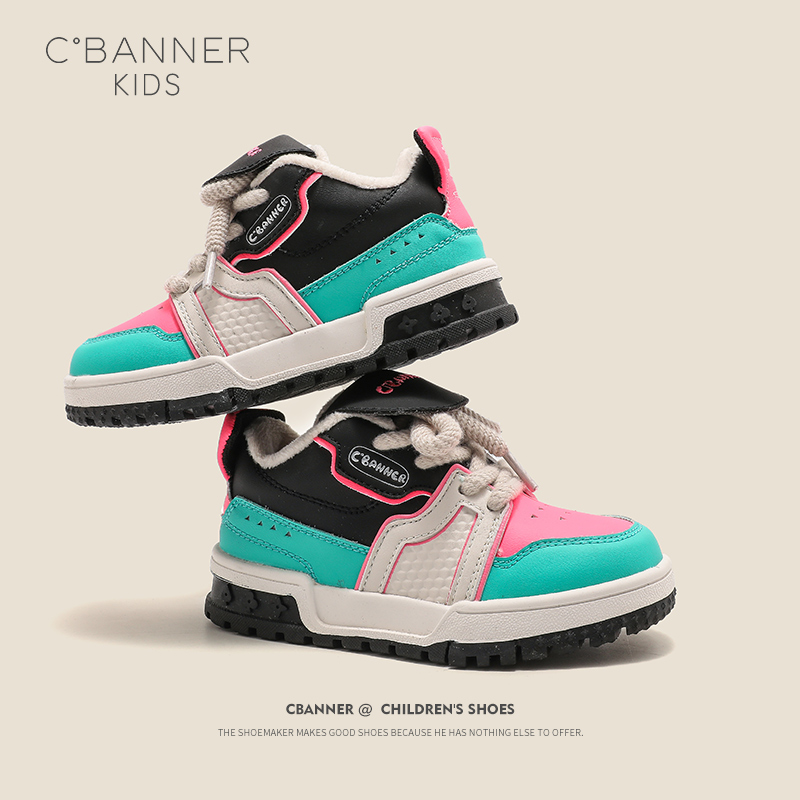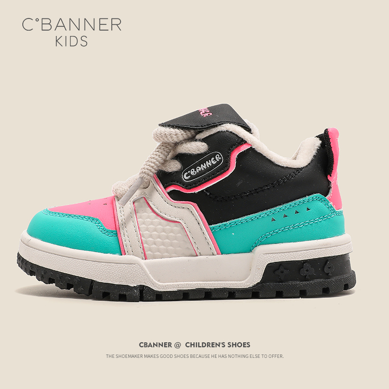千百度儿童运动鞋2025冬季新款女童加绒保暖板鞋男童软底休闲棉鞋